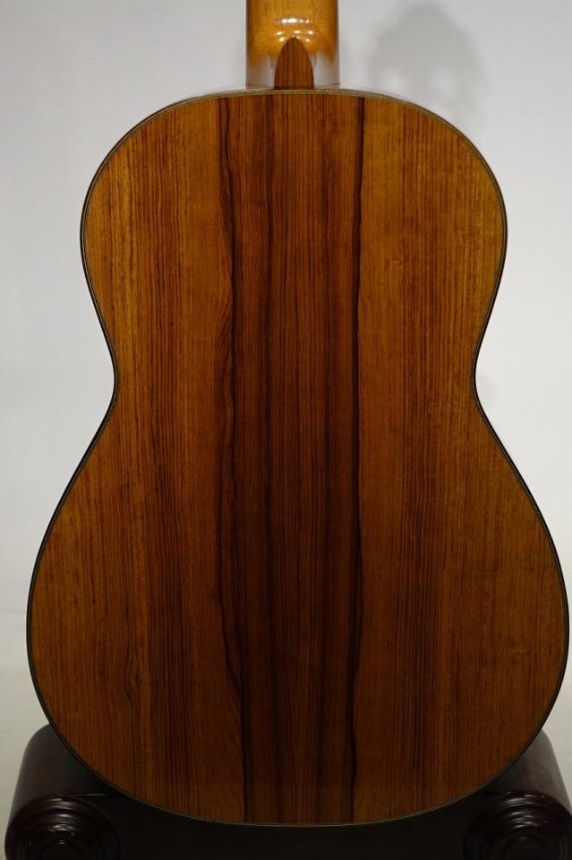 表板も大変古いスプルース材で日焼けしてわずかに色合いがムラになっていますがとてもいい材が使われています。側・裏板は中南米ローズウッドと呼ばれるものでハカランダに似た組成のもので力がある板目の良材です。