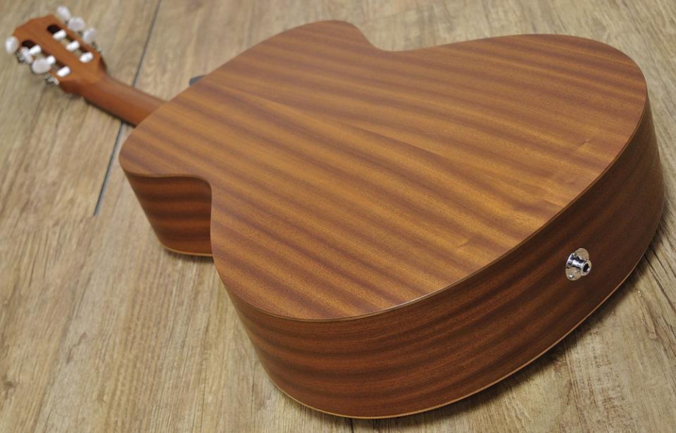 サイド/バックにはラミネイテッド構造のサペリ材を用い、バランスの取れた中低域とふくよかな響きを実現しています。
