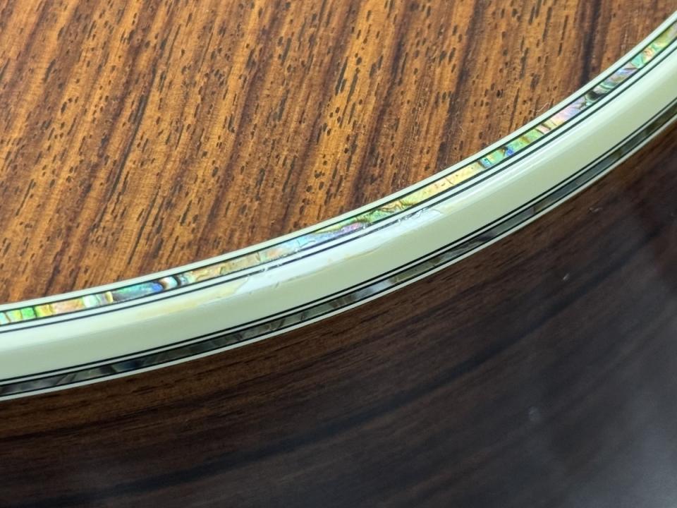 目立つダメージとして、塗装が欠けてしまいバインディングが剥き出しになっている箇所がございます。その他細かい打痕や擦り傷が散見され、使用感はあるものの年式を考慮すれば比較的綺麗な外観です。