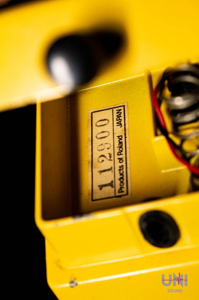 今回入荷したこちらはシリアルが「112900」、JRC 4558D 1358のオぺアンプ、バックラベル下段に入れられた「Products of Roland MADE IN JAPAN」表記が特徴となる1981年製の個体。内部配線と同じ種類のジャンド―線がございますが、詳細は不明です。