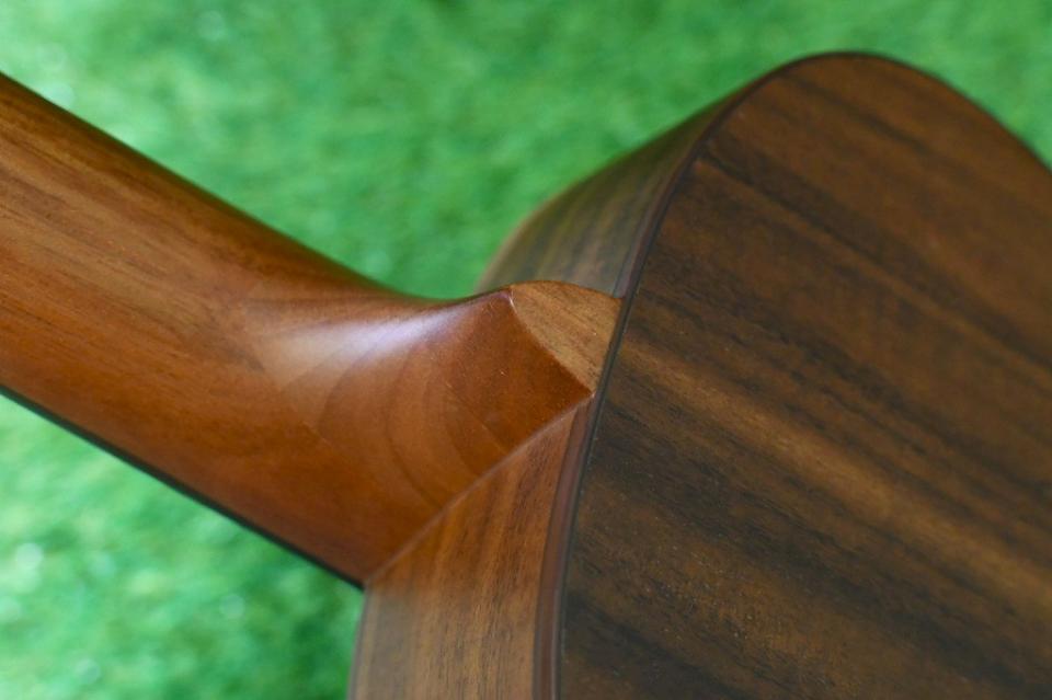 木の質感のある素朴なルックスながら、ブラックカラーのバインディングやロゼッタのアバロン装飾で、高級感が漂います。