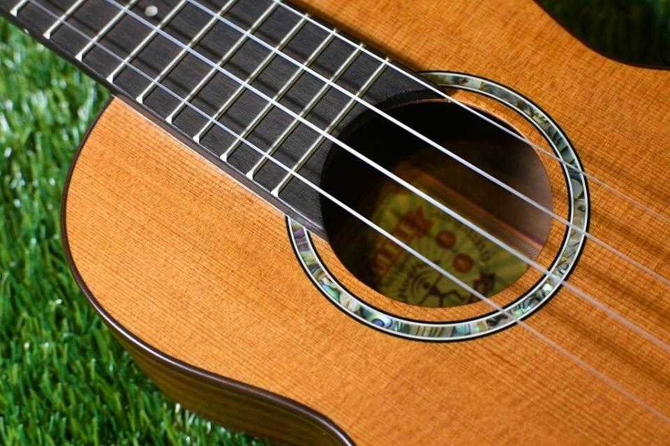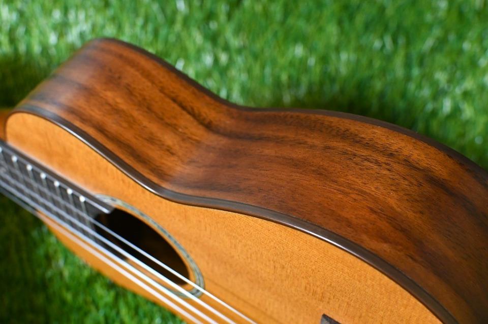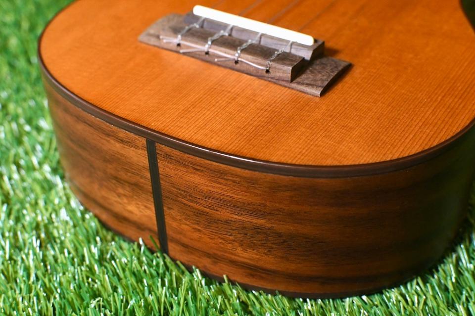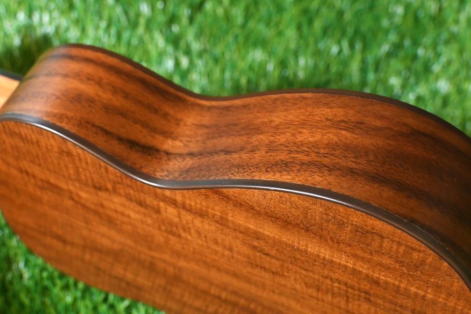 ナチュラルなサテンフィニッシュは薄く手触りも良く、音質、演奏性ともにウクレレ本来の特徴を損なうことなく仕上げられています。
