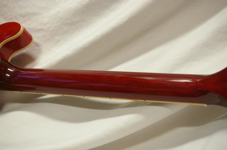 ハンド・ロールド処理により角が落とされ丸みを帯びた“C”シェイプのマホガニーネック、パーロイド・ドット・インレイが打たれたローズウッド指板を擁し、往時の高いプレイヤビリティを現代に蘇らせています。
