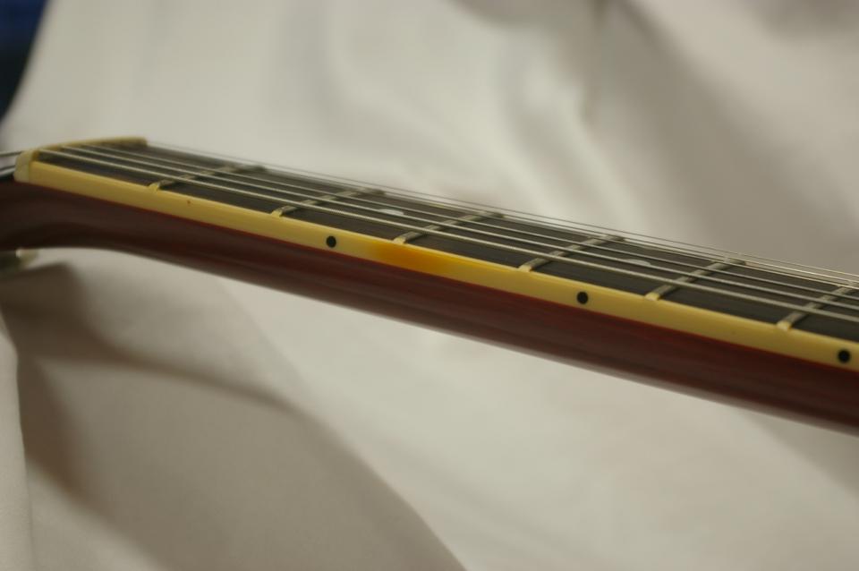 バインディング6弦側に色焼けや、一部欠けた部分が多少ございますが (画像8,9枚目参照)、演奏上問題ありません。