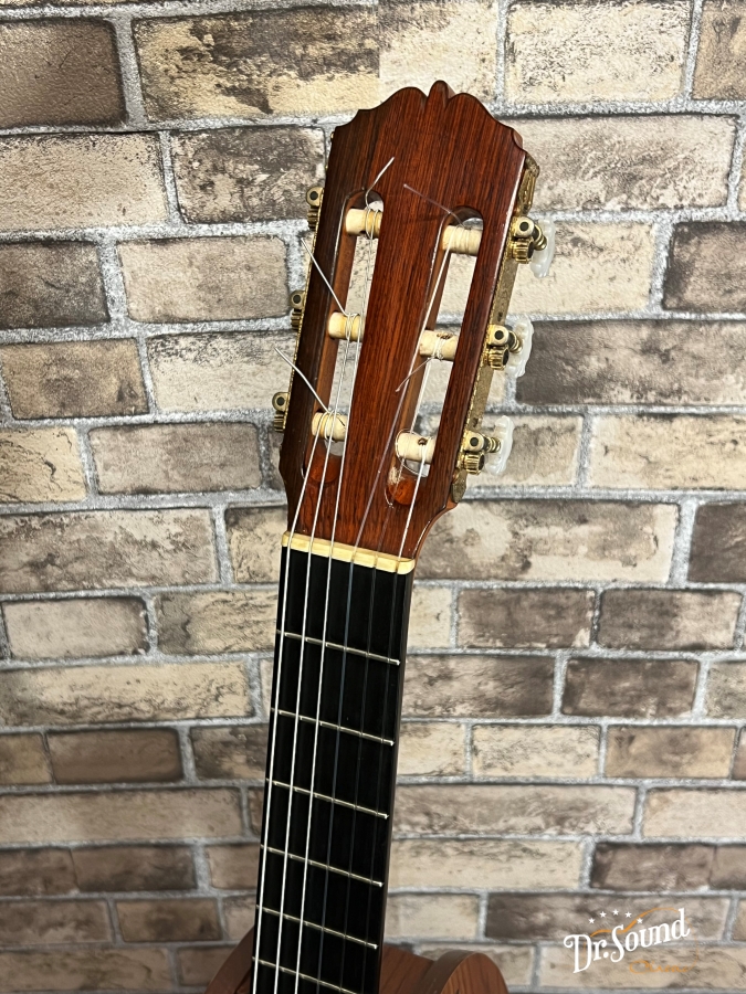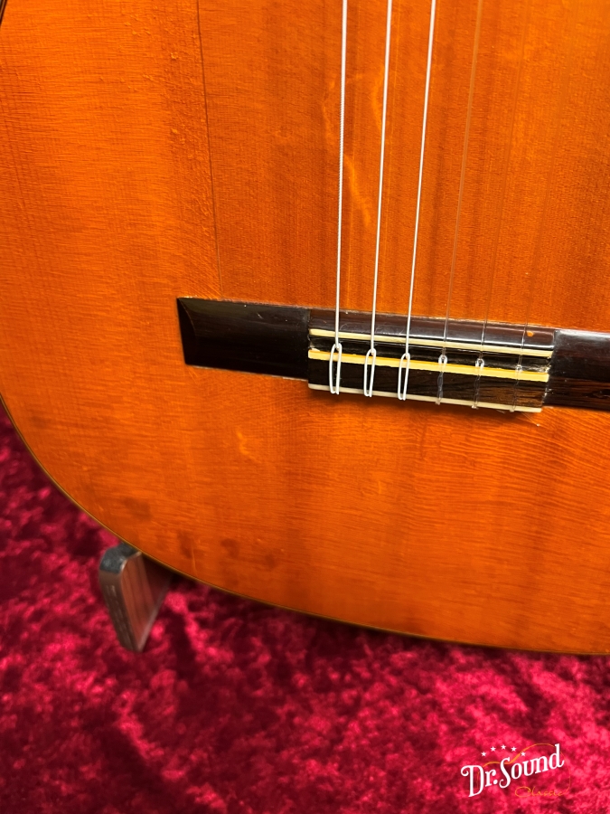 かなり使い込まれており、各所に演奏キズが散見、ペグの軸にも痛みがあるなど使用感があることと、フラメンコギターとしては少し弦高も高めになっているため、価格設定は抑え目にしております。