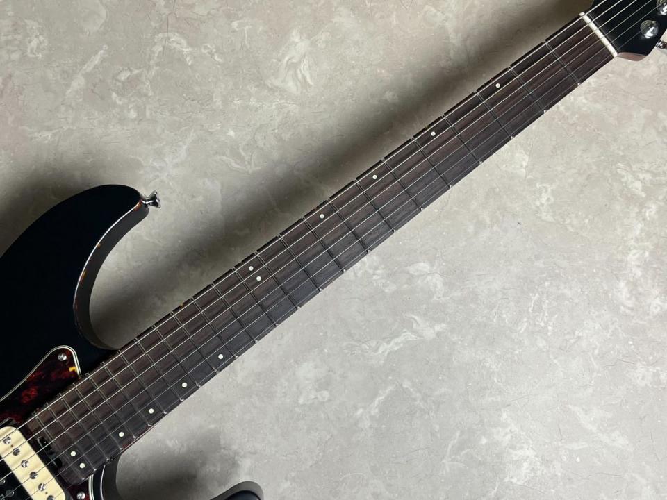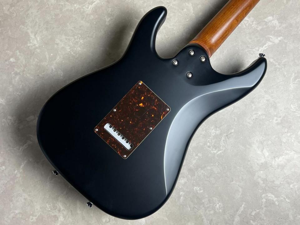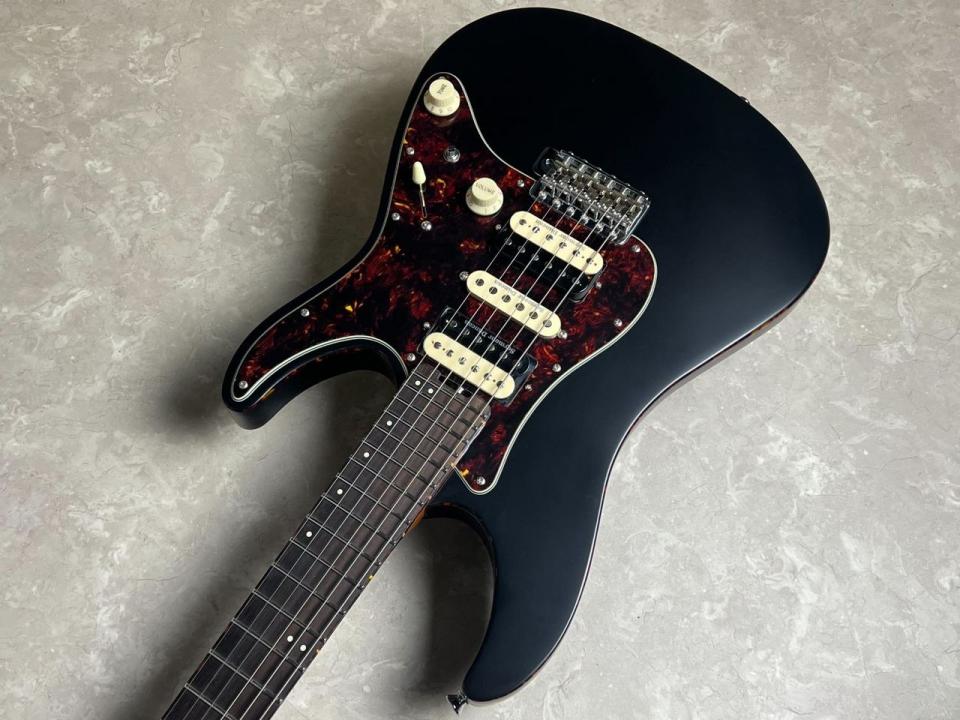 シックなマットブラックボディにローステッドメイプルネック・ステンレスフレット・Duncanピックアップ搭載の万能モデル。