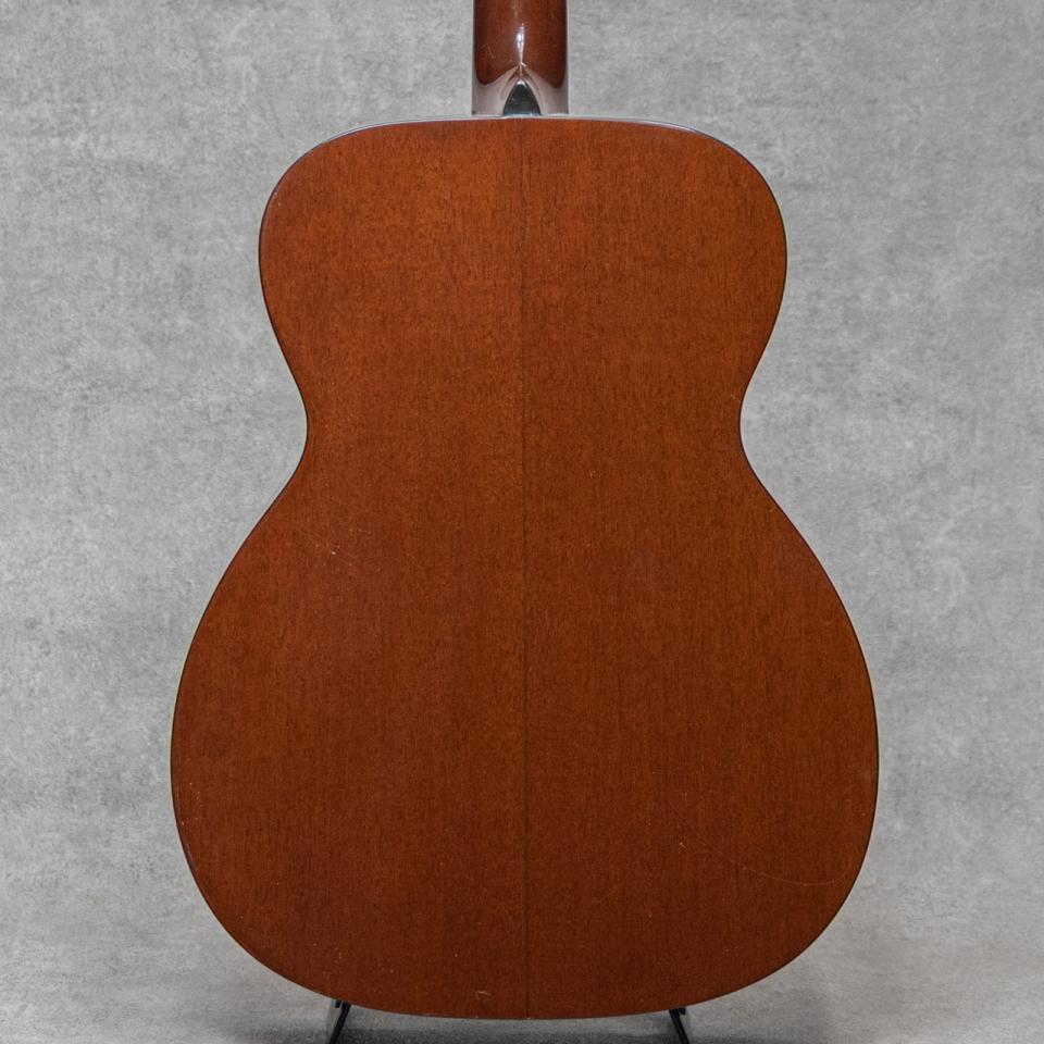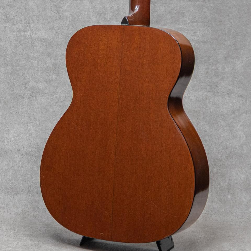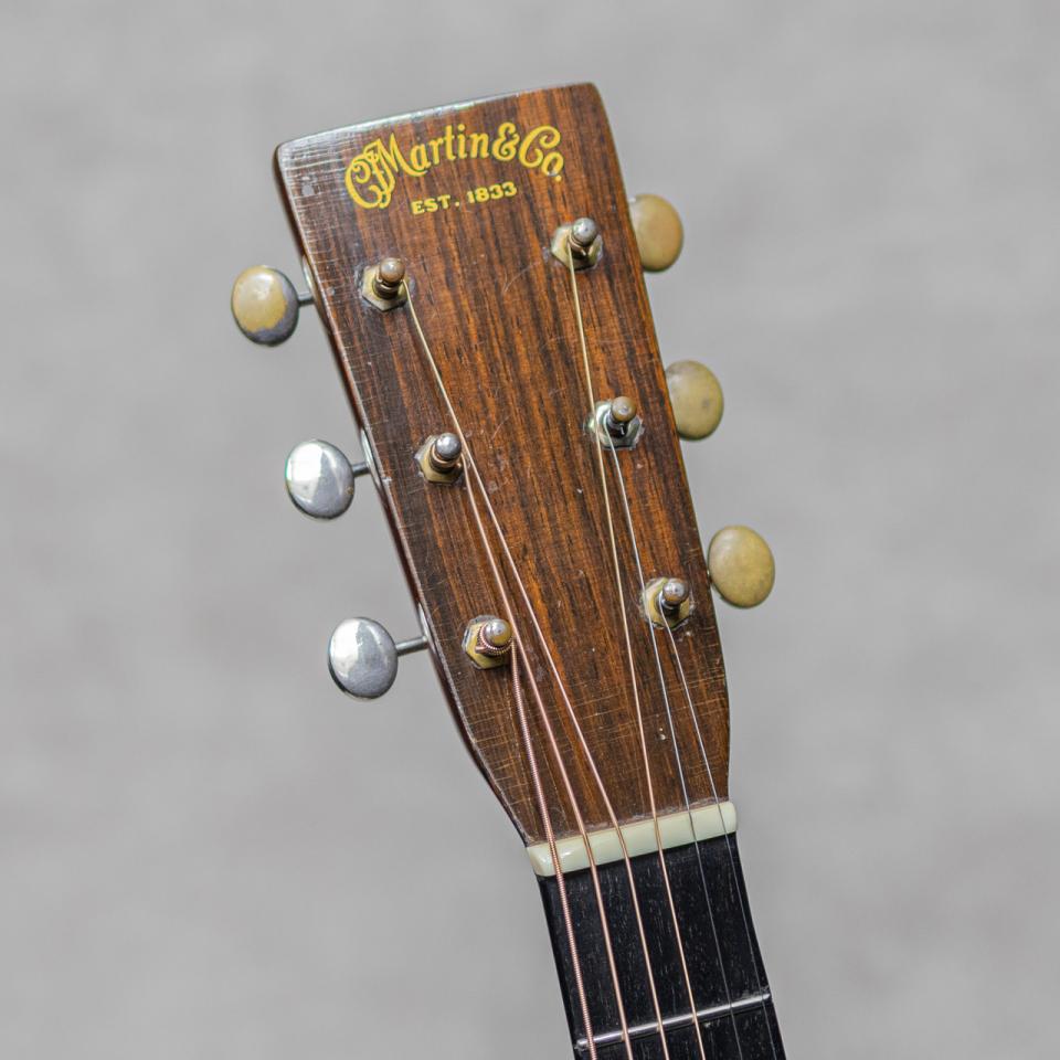 ブックマークする 値下げ通知に登録オリジナルスキャロップ期の貴重な”OOO-18"。エボニー指板最終年のナロウネックモデル。1941年製Vintage品。アディロンダックスプルーストップ、マホガニーサイド&バック、マホガニーネック、エボニー指板、ロングサドル、オリジナルWaverly12:1ペグ、べっ甲柄セルロイドバインディング、スチールTバーロッド、スキャロップドXブレイシング。過去に修理がされており、ブリッジはエボニー製にてリプレイス、ピックガードは雰囲気の良い赤みの強い本べっ甲製にて交換されています。また全体的にボディトップ&サイド&バック、ナック&ヘッド裏が塗装吹き直しされていますが、塗膜も薄く響きを著しく損ねる印象は受けず良好です。いずれも丁寧な作業がされており、肝心のサウンドもしっかりとオリジナルスキャロップならではの響きの深いサウンドを聴かせててくれています。楽器全体が軽く、全体で響くサウンドを肌でダイレクトに味わえる本器。ふわっと響く倍音としっかりとノビのあるトーン。くたびれた印象を受けず、優しく艶やかに響いてくれます。表面的な小傷や若干の打痕は否めませんが、大きく損なうものはなく良好。ボディサイドに極軽微なクラック痕が見られますがライニング上で懸念は覚えません。適切なネックリセットが行われておりネックまわりも良好で、弾きやすいアクションをしっかりと保っています。ますます流通の少ないプリウォーもののマーチン、さらにはかなりの高騰も見られ入手が難しくなっています。良い雰囲気のプレイコンディションビンテージ、是非お見逃しなく要チェックください。修理履歴やその他詳細もお気軽にお問い合わせ下さい。