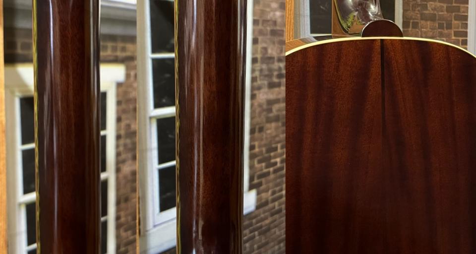 ワンピース・マホガニーのネックは、ギブソンと同様にダヴテイル・ジョイントでボディに接合され、奥田民生氏愛用の1945年製ギブソンJ-45をベースとした厚みのあるネック・プロファイルを採用。ヴィンテージ・ギブソンのフィーリングをお楽しみいただけます。
