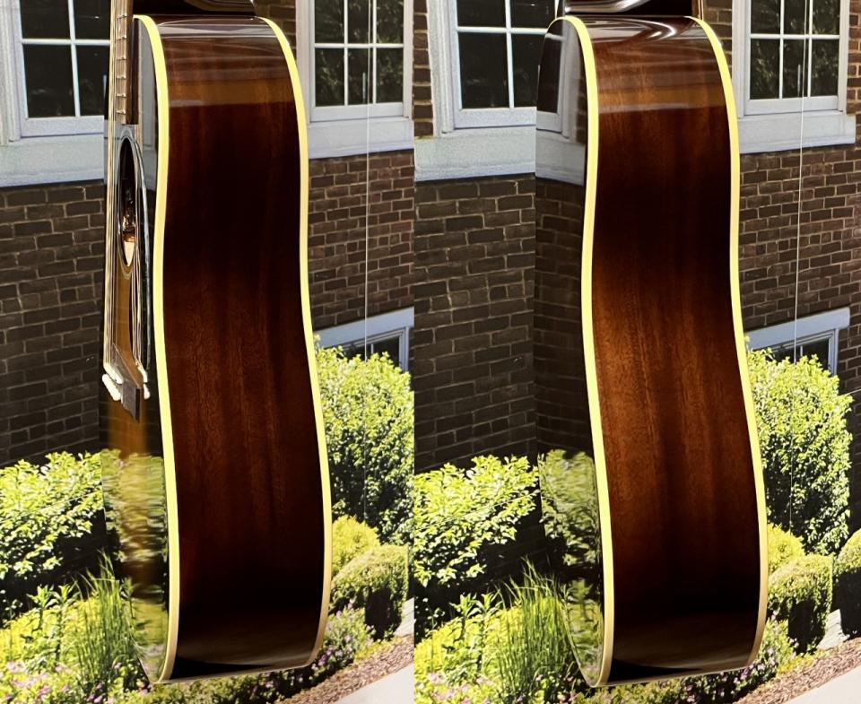 サイド&バックにはマホガニー材、トップにはギブソンと同じ “サーマリー・エイジド加工” を施したシトカ・スプルース材が使用され、ボディ内部のスキャロップド・Xブレイシングと相まって、新品でありながら長年弾きこまれたヴィンテージの1945年製のJ-45を彷彿とさせる深みのあるサウンドを生み出します。