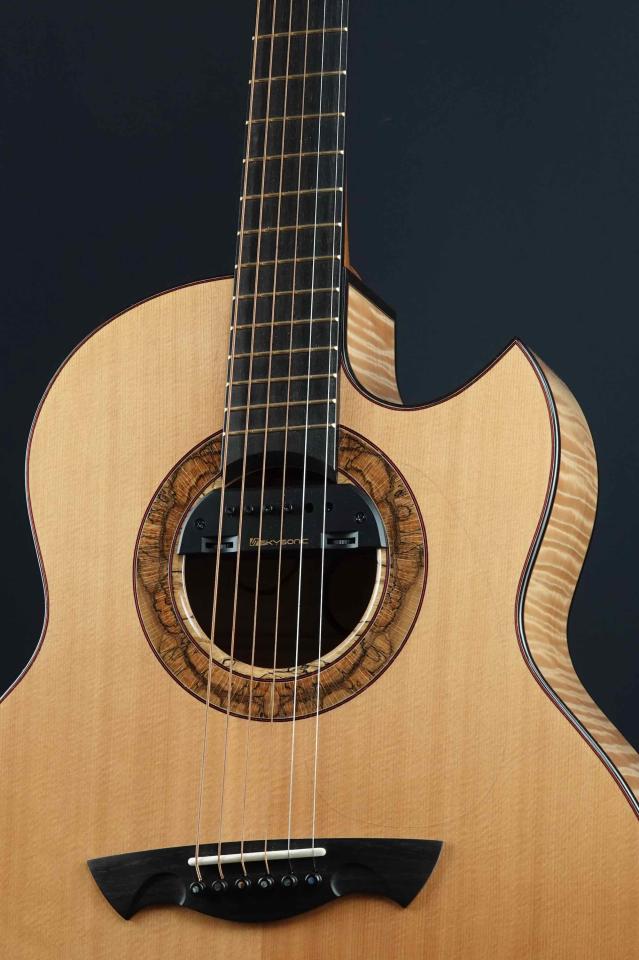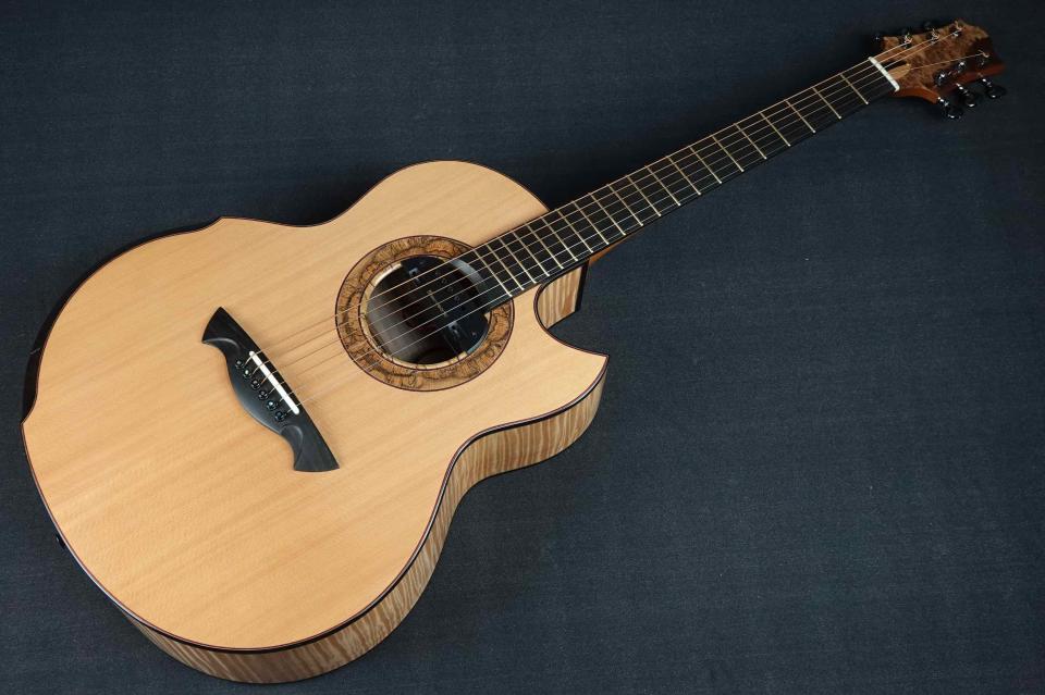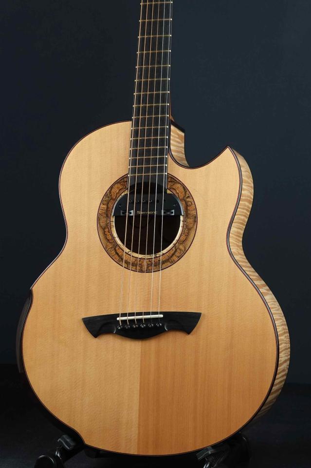 また、この優美で大らかなデザインは、サーゲー、グリッド・ラスキンやグリーンフィールドなどカナダの製作家への尊敬が感じられ、斬新な手法を取り入れながらも、細部まで拘った仕様を惜しげも無く盛り込んだ、カナダの香りのする楽器です。