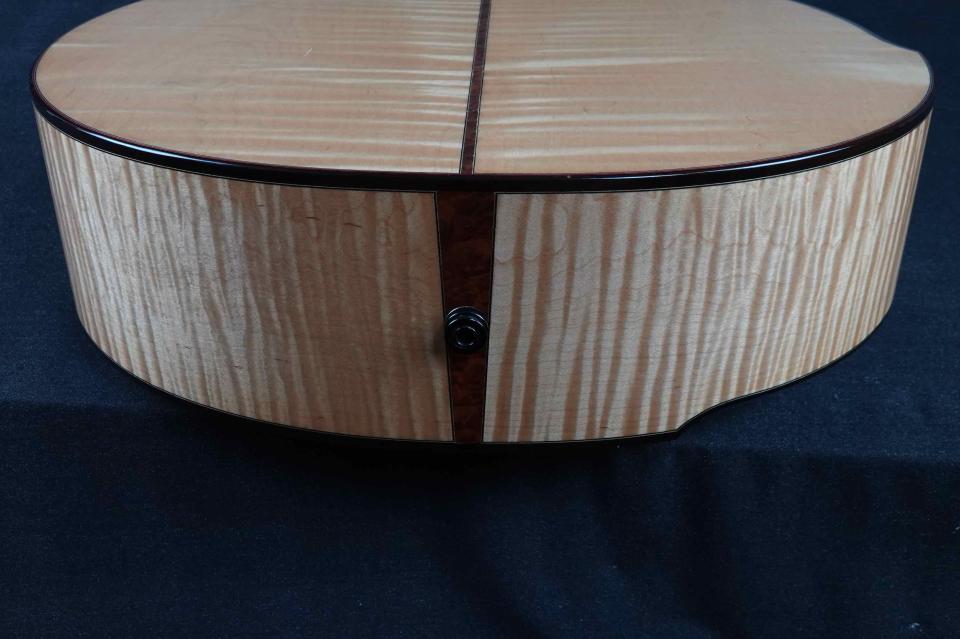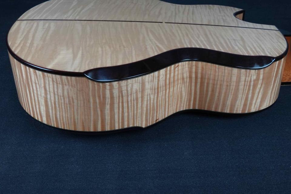 サイドバックは立体的な杢目の素晴らしいカーリーメイプルが使われています。