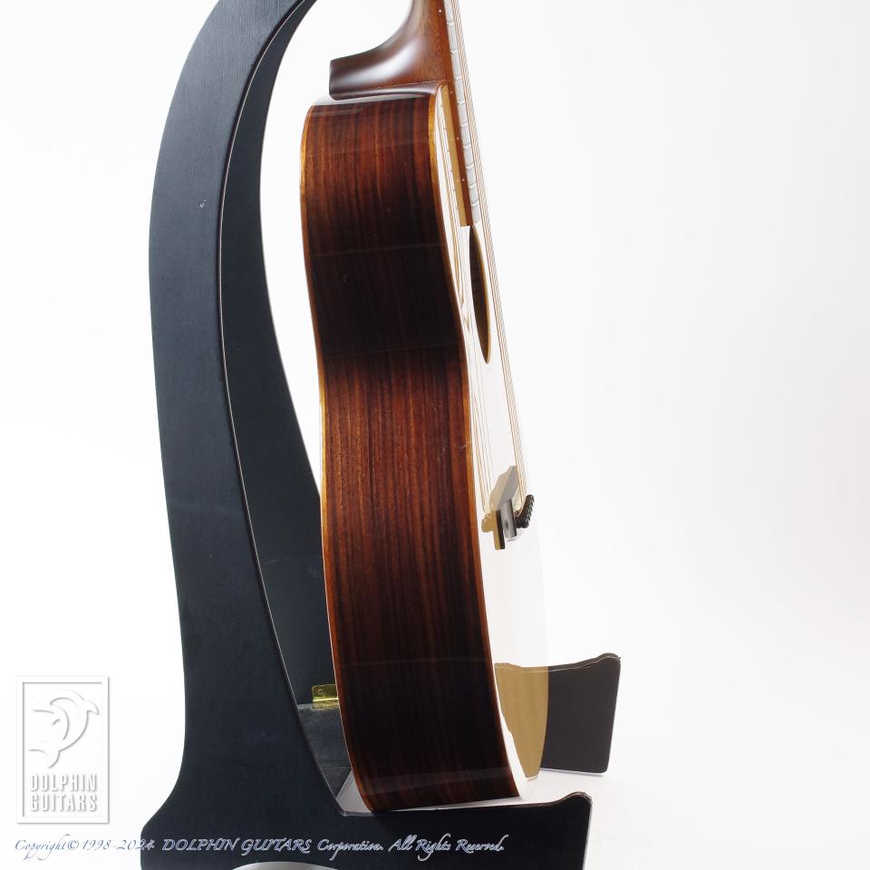ローアクションにセッティングし、ソフトタッチでも十分な音圧を得られるように設計されており、抜群の操作性能を誇ります。全体的にやや甘いトーンが心地よく、その中にキラリと感じるスプルースの高音特性、インディアンローズの持つ低域の重量感もバランス良く混ざり合います。