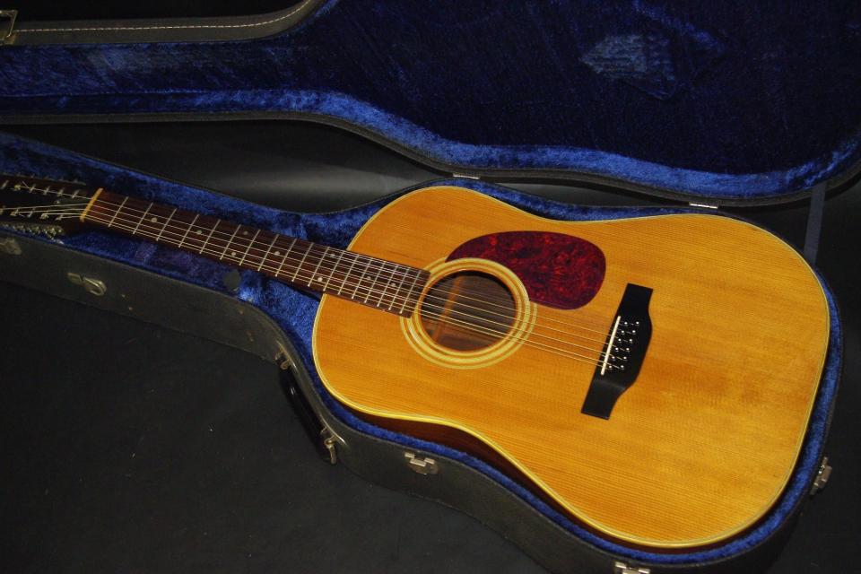 1970年代初期に生産されたレアなモーリス12弦ギターの入荷です!!トップはスプルース単板、サイドバックにはローズウッド合板を採用、スロテッドヘッド、12フレットジョイントのドレッドノートが特徴でこのスペックでは滅多に出てきません!ペグはオリジナルですがつまみが一つ交換しています。べっ甲柄ピックガードも交換、ブリッジはオリジナルで残っていました。ネックヒールへはストラップピンが打っています。ピックアップの取り付け加工はございません。多少の傷は確認できますが年式から綺麗で演奏性も優れていますので安心です。ナット幅は約47mm、12弦としてはとても握りやすいグリップです。ネックのアングルも適正でトラスロッドは硬さを感じるところまで締めて調整していますが問題なく機能しています。フレットは交換されており少々の減りは出ていますがだいぶ余裕があります。弦高は12フレット12弦側で約2.7mm、1弦側で約1.9mmの高さで押さえやすく調整しています。サドル残もあり微調整にもお応えいたします。サイドバックは合板ですが12フレットジョイントの影響もありヴォリューム感があります!煌びやかな高音が魅力!是非この機会にどうぞ!!汎用ハードケース付き。