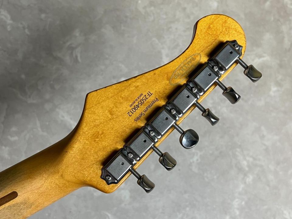 ピックアップには通常モデルに使用されているものよりもさらに出力を抑えめなピックアップを採用。アッシュ・メイプル1Pのブライトさに立ち上がりの良さがありつつどこか太いサウンドに非常にマッチしており、ピッキングに対する反応性が早く、ニュアンス重視で演奏されたいプレイヤーにとっては素晴らしいのサウンドに仕上がっております。ドライブサウンド、クリーンサウンドどちらも絶品で、いつまでも弾いていたいような逸品です。