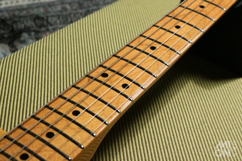 確かなルックス、そして現行品にはない濃い色の上質な木材。00年代前半らしい適度に経年変化した濃い色のメイプルネックもプレイアビリティも良好。名前の通り枯れたヴィンテージらしいサウンドで、しっかりプレイヤーの求める音に寄り添ってくれます。