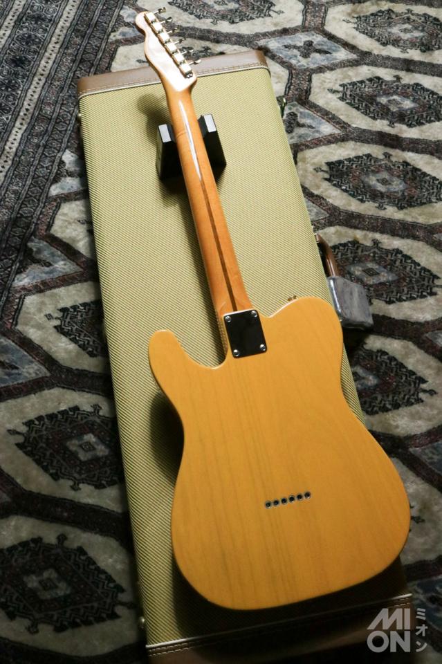 アッシュボディ、エッジにたっぷりと丸みを持たせた分厚いUグリップの1ピース・メイプル・ネックという組み合わせは、52年製の実機さながら。本物に肉薄するため手間をかけ製作されています。ブラス製のブリッジサドル、マイナススクリューネジで統一され、明るめのバタースコッチ・ブロンド・フィニッシュというこだわりも、人気の理由の一つです。
