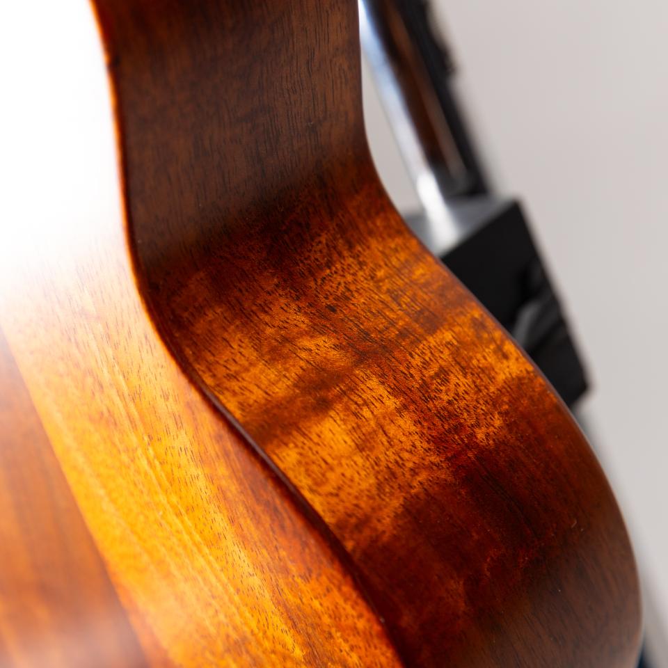 小ぶりで非常に軽量なボディですが、驚くほど音量があります。ハワイアンコアらしいコロコロとしたサウンドが心地よく、いつまでも弾いていたくなるようなウクレレです。