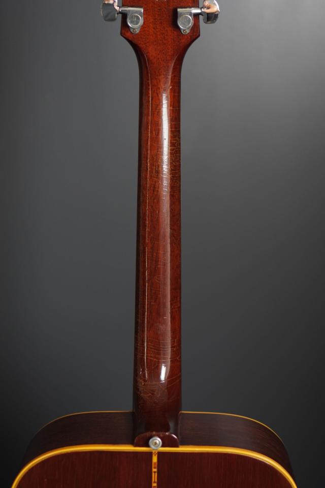 ボディはノーマルサドル以前の元々がアジャスタブル時期をサドル改造しており、ブレーシングも60年代後期の、ややガッチリし出した頃ですが、ダブルXになる以前、ネックグリップもナローからレギュラーグリップになった頃ですので、ギターの鳴り方は69年頃のハミングバードに近い感じです。
