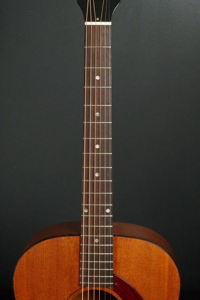 小柄なLG系の中でもオールマホガニーのボディのLG-0は、気兼ね無く手頃に扱えるヴィンテージとして親しまれており、今回入荷の65年製のLG-0は、ナット幅が約42mmとぎりぎりナローネックになる直前ですので、近年では結構人気が高まっている仕様です。