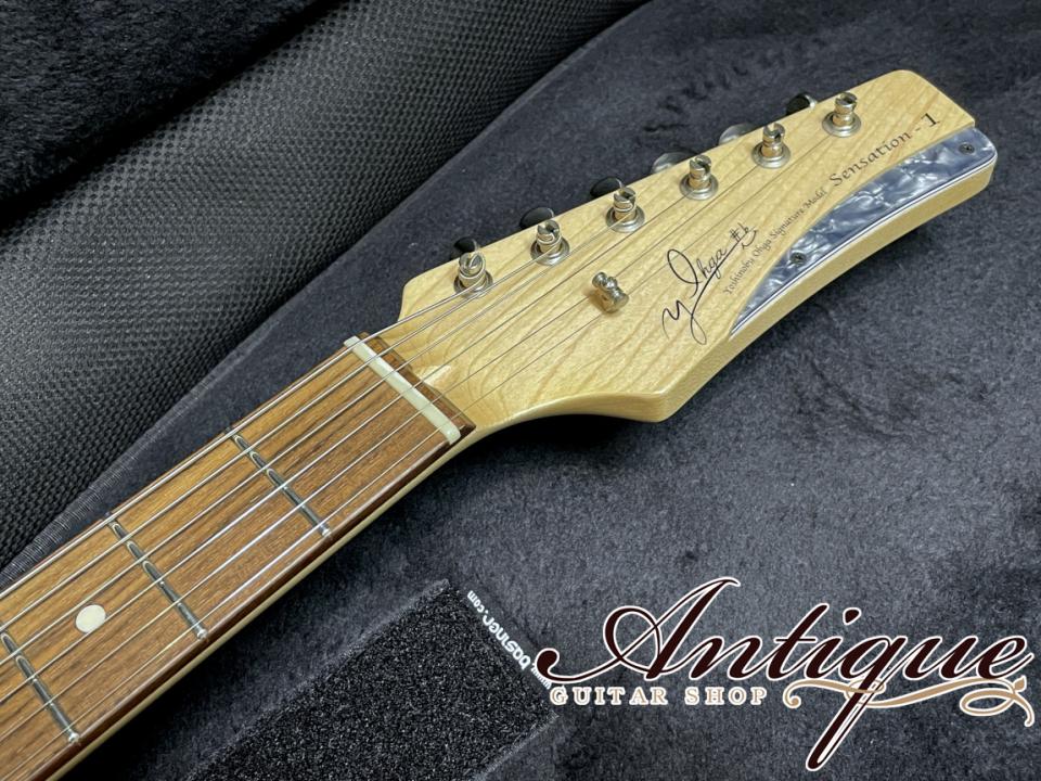 今回ご紹介させて頂くのは、常に第一線で多くのアーティスト達を支え続ける大賀好修氏が3年の歳月をかけて構築し、拘り抜いた一本のギターをイメージ、そしてそれをマスタービルダーである板坂氏の手腕によって形となった特別なモデル。大賀氏自身の名を冠した限定10本製作のYoshinobu Ohga Signature Sensation-1モデルになります。またこちら前ファーストオーナー様が完全コレクション目的にて購入され大切に完璧な状態にて保管されてきた、新品時と全く変わらないデッドストックコンディション品になります。