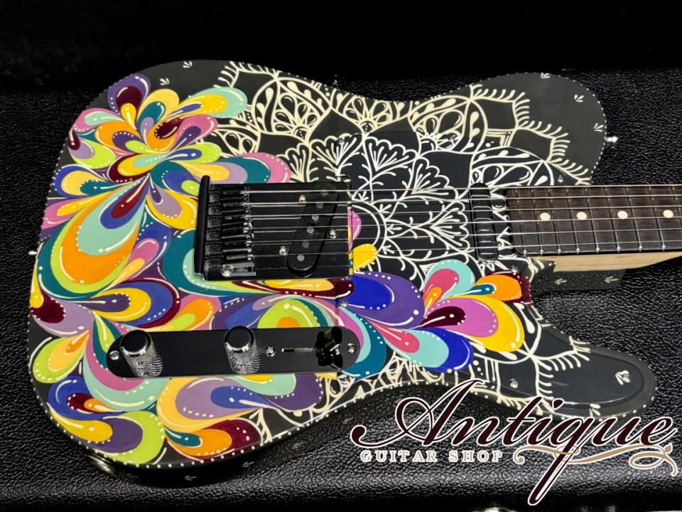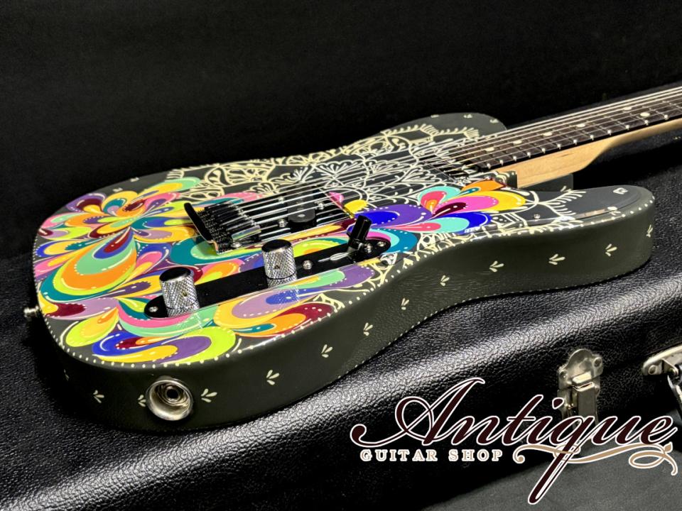今回ご紹介させて頂くのはそのグレッグ・フェスラーと、Fenderがその魅力に惚れた希代のアーティストであるマディソンロイとのコラボレーションモデル。過去にも何度かFender×Madison Royのコラボギターが存在しますが、国内に入荷する事は殆ど無くネット上でしかその存在を知らない方も多いかと思われます。今回の一本は、伝統的なスタイルをベースにしながらも近年の高い技術を取り入れたCustom Deluxe Telecasterに、春分を意味するEquinoxのフラワーモチーフ・フリーハンドペイントが施された世界に一本となるコラボレーション・テレキャスター。加えてソリッドカラーフィニッシュながら王道のアッシュボディ、真っ黒なローズウッド指板、良質なクォーターソーンメイプルネック等の厳選材、最高峰のサウンドをアウトプットするホセフィーナカンボスによるハンドワウンドPUの採用等、その唯一無二のルックス、サウンド、プレイアビリティ、全てに拘り抜いた唯一無二のプレミアム過ぎる一本。コレクター様放出の極上ニアミントコンディション品になります。