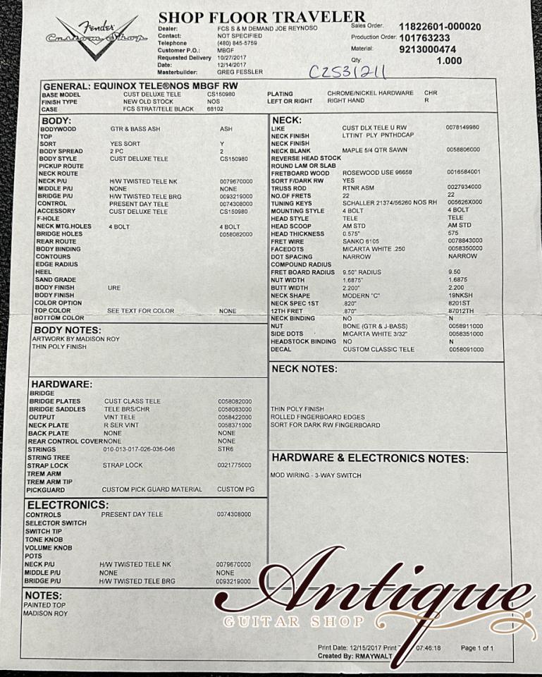 | 商品名 | Fender Custom Shop MBS Equinox Telecaster w/Josefina HW-PU Built by Greg Fessler & Painted by Madison Roy "One Of Kind" |