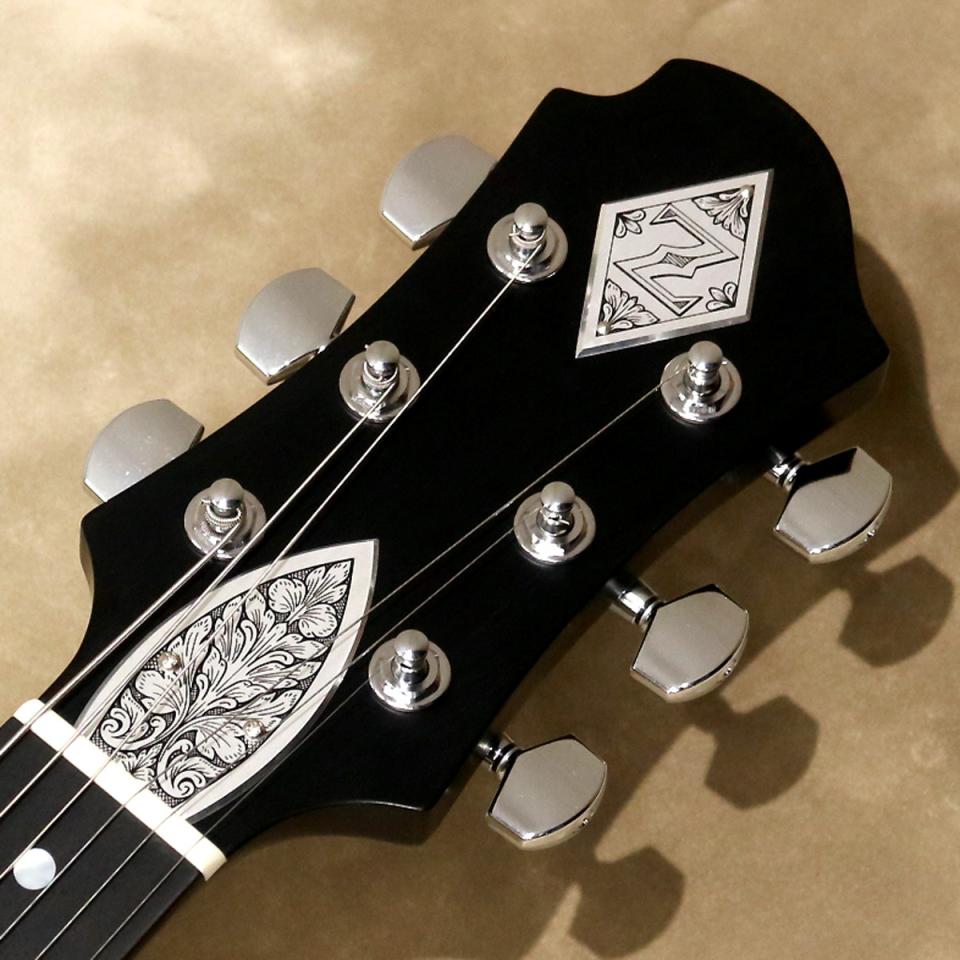 同様にアルミ合金を用いたヘッドのダイアモンド・エンブレム、トラスロッド・カバー、テイルピースやコントロール&スイッチ・バック・プレートに至るまで彫金を施しています。
