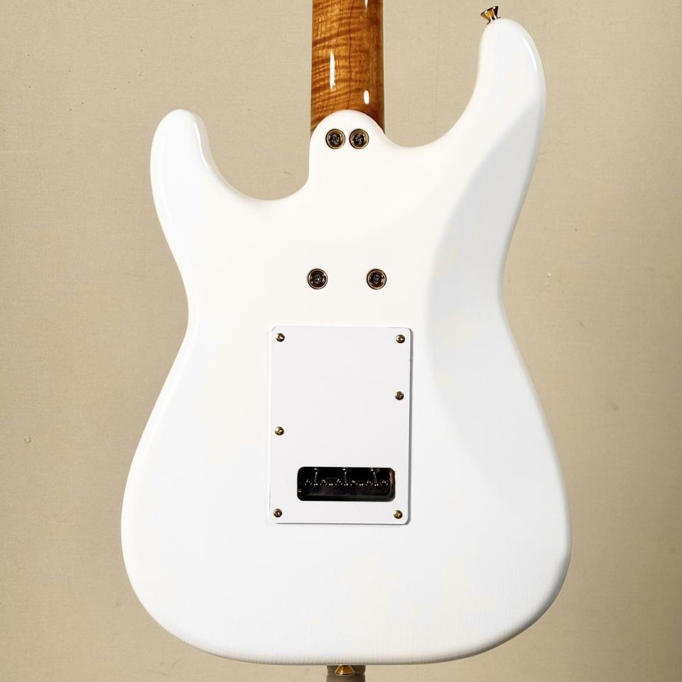 ホワイトブロンドのカラーにホワイト1pピックガードの組み合わせがクールな一本です。