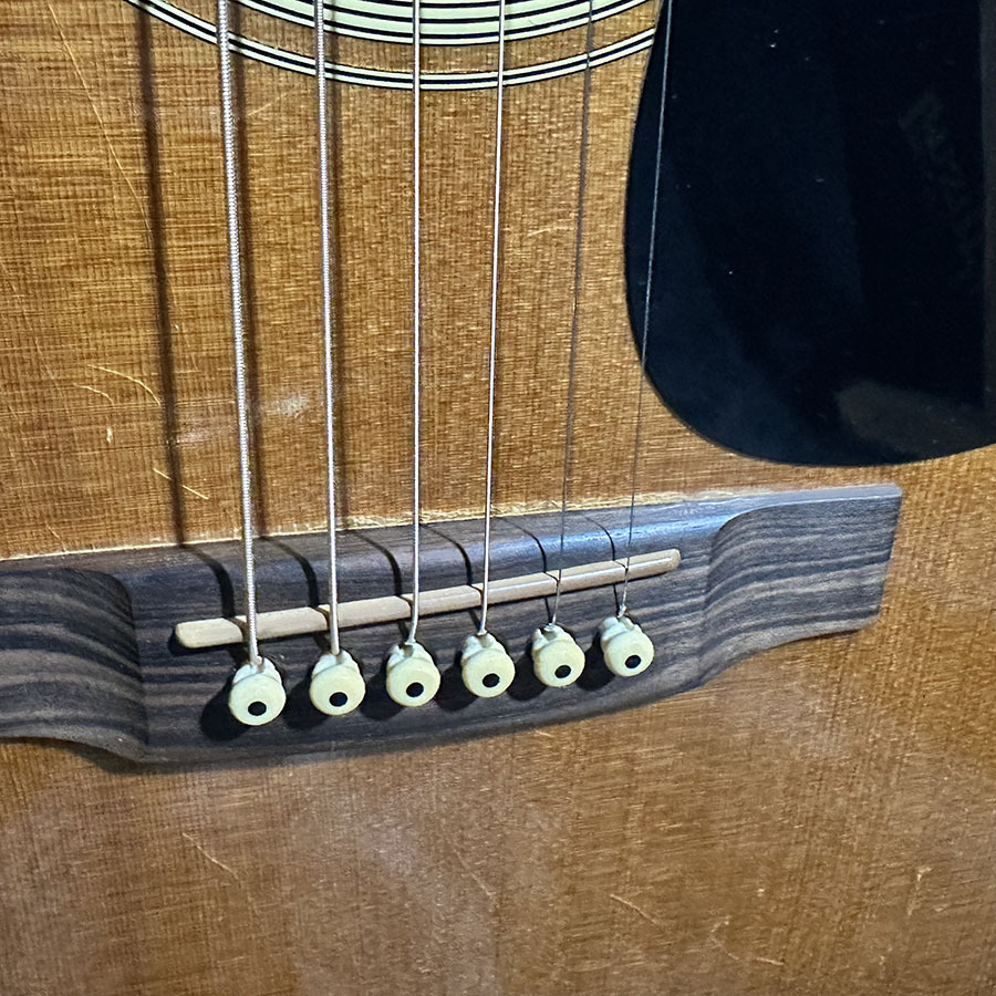 スプルーストップ、サイドバックにはローズウッド、指板とブリッジにはエボニーを使用。