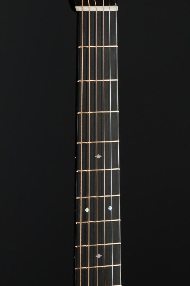 ブラックエボニーの指板に、戦前のオーセンティックなスロテッドダイヤモンドのインレイ。