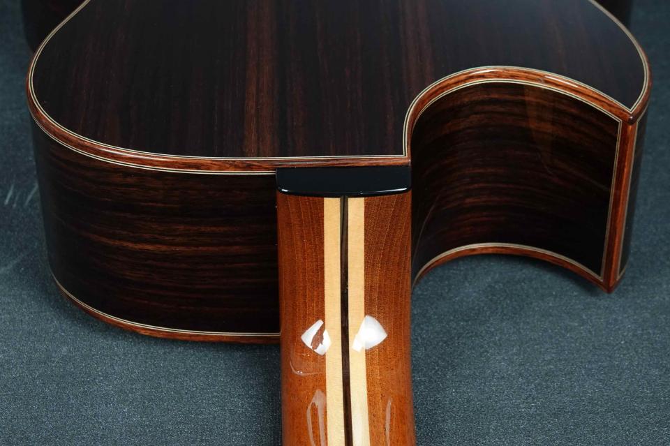 サイドバックは、赤黒い色味のインディアンローズウッドが使われています。