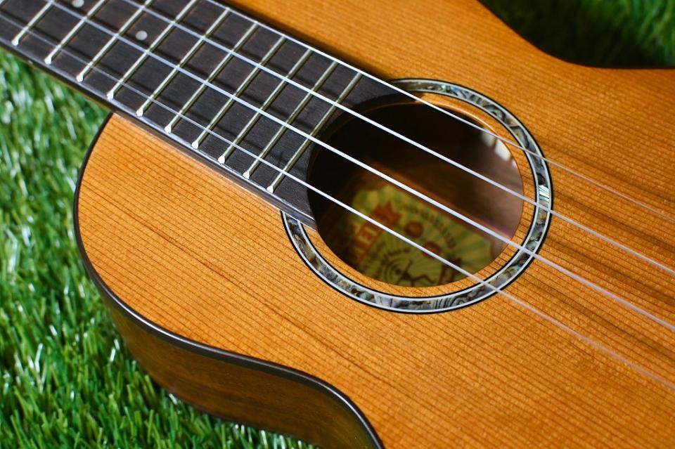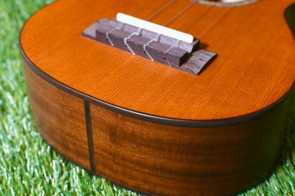 ナチュラルなサテンフィニッシュは薄く手触りも良く、音質、演奏性ともにウクレレ本来の特徴を損なうことなく仕上げられています。
