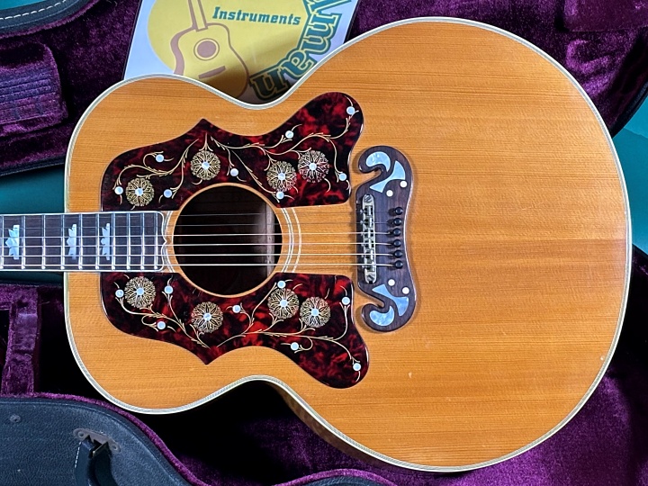 もう見た目のインパクトで圧倒されますよね、J-200ナチュラルブロンドのダブルガードモデルです。