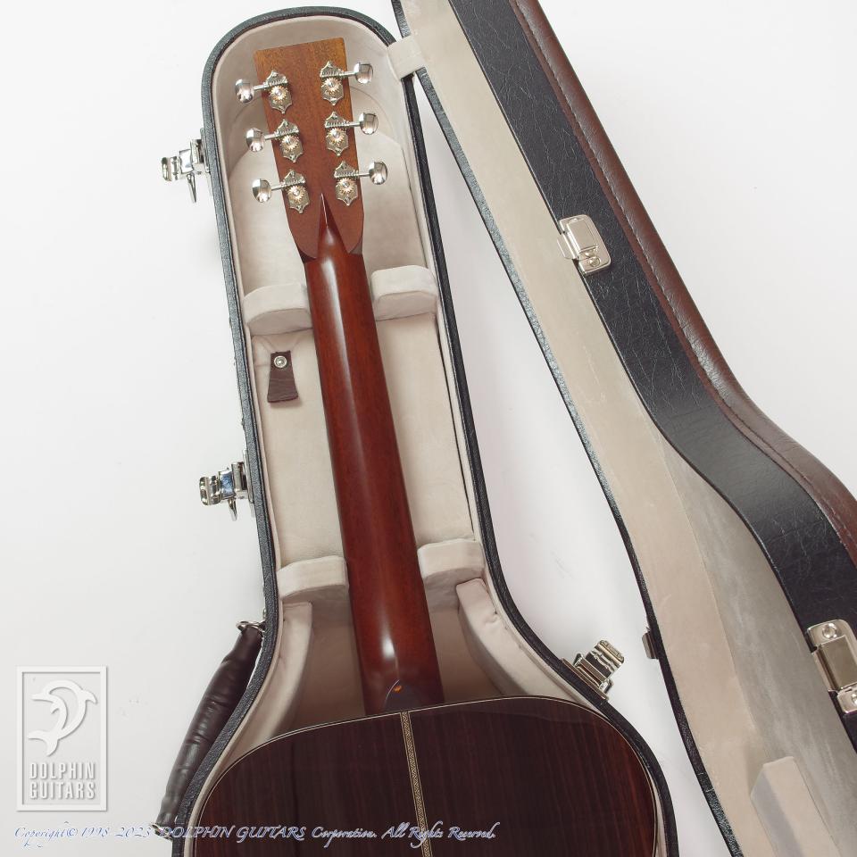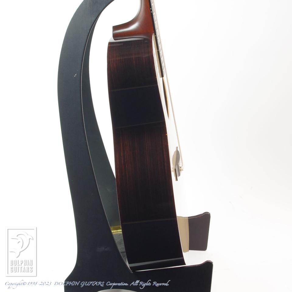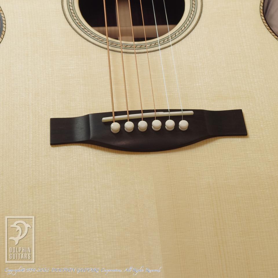 ブレイシングパターンはプリウォースタイルのスキャロップドXに独自のアレンジを加えた構造であり、そのブレイシング材にもアディロンダックスプルースを使用し、ニカワ接着でヴォイシングしてますので、トップの反応の良さや弾力性などから圧倒的なボリューム感と上質なトーンを放ち、ローズウッドの重厚さと合わさり、実に素晴らしいサウンドを生み出します。