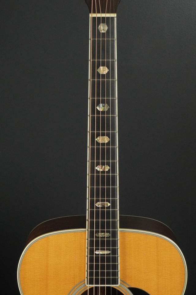 J-40のヘッドが立てロゴになる前のスペックで、美しい杢目のローズウッドのヘッドプレートも雰囲気抜群です。