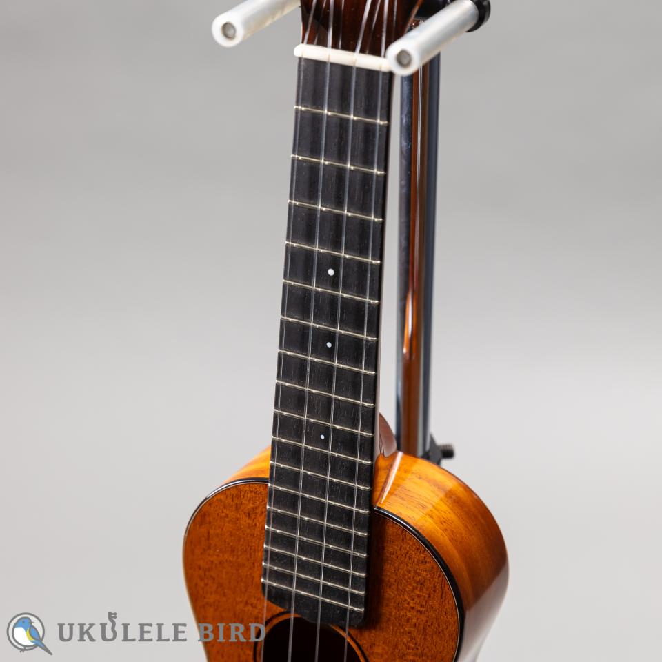 ショーモデルは12フレットまでしかない仕様でしたが、オールド感あふれ味わいはあるものの弾ける曲が限られてくるため、本楽器は演奏性を考慮し当店が特注した17フレット仕様となります。シンプルでオーソドックスなソプラノウクレレですが、音量、リバーブ感共に素晴らしい仕上がりになっています。