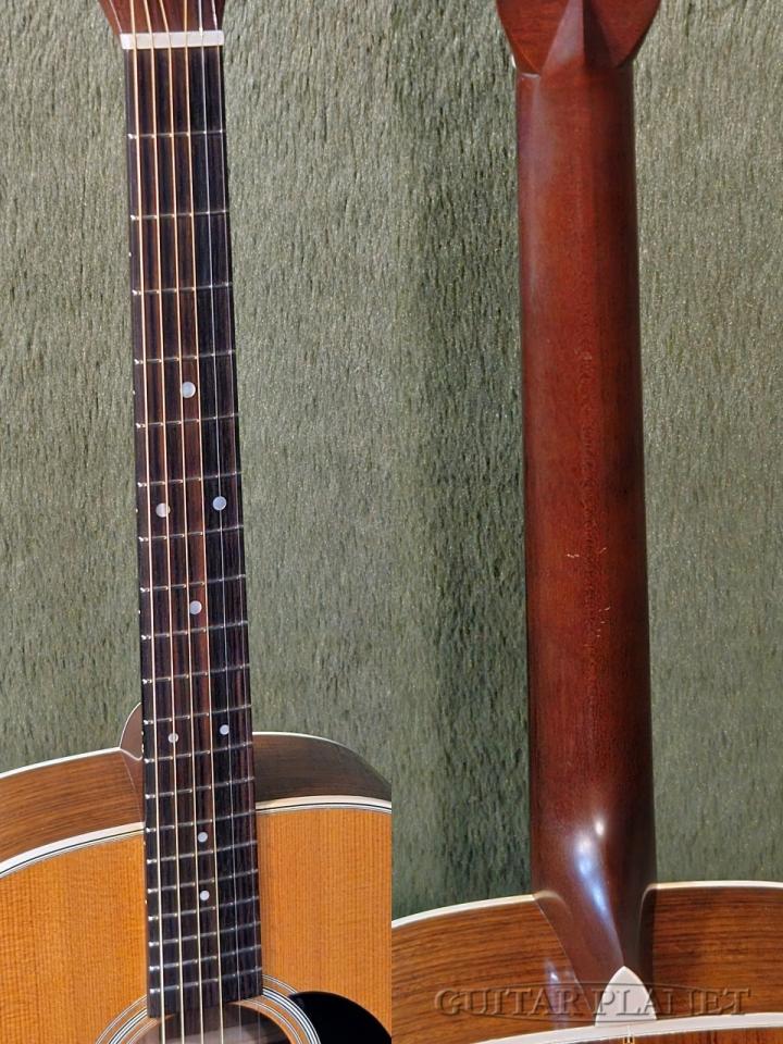 当店入荷後、ネックアングル修正、フレット、ナット交換、バックブレーシング剥がれ接着、トップ・バックのセルバインディング貼り直し、トップセンター開き割れ止めパッチ打ちリペアを施しています。
