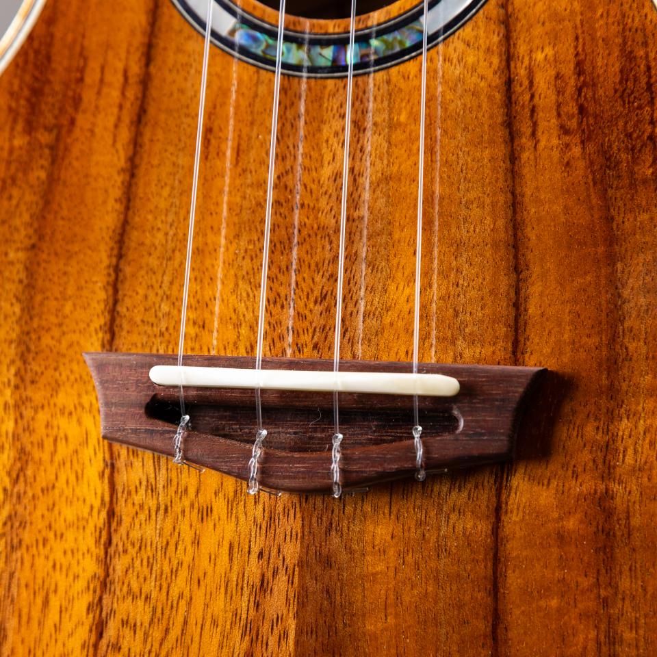本機種は、ボディに2Aグレードのハワイアンコアを使用したカッタウェイコンサートモデルです。