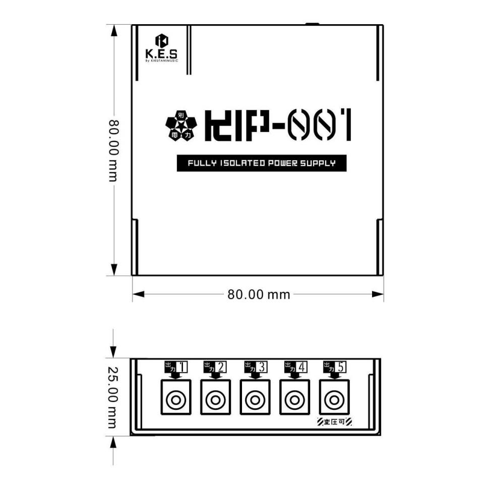 KIP-001は高電圧、低損失、かつ構造上筐体上面を放熱板として設計している為、高負荷時の熱変換量が大きく、大きな負荷をかけた状態で稼働させた場合、筐体上面はかなりの温度に達しますが、製品不具合ではございません。またKIP-001はフルアイソレートになっている為、カレントダブラーやデイジーチェインケーブル等を使って1,000mA消費電流対応も可能ですが、上記同様に筐体上面が熱を持つ事がございます。