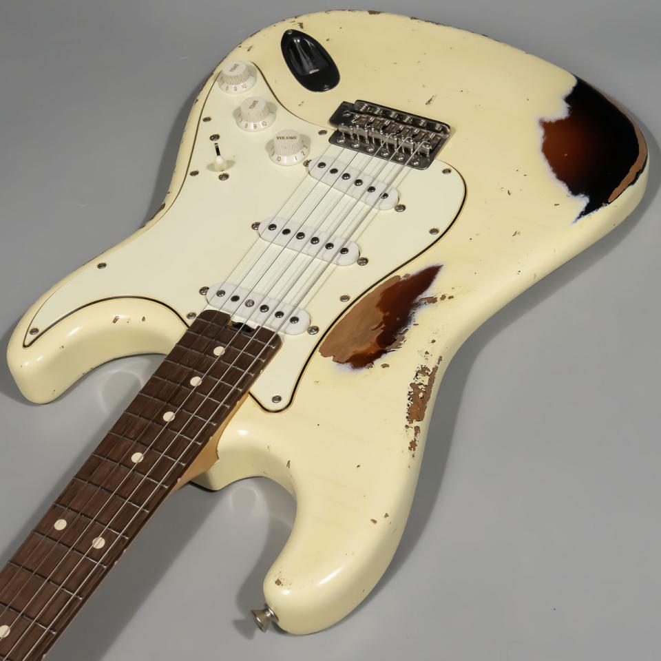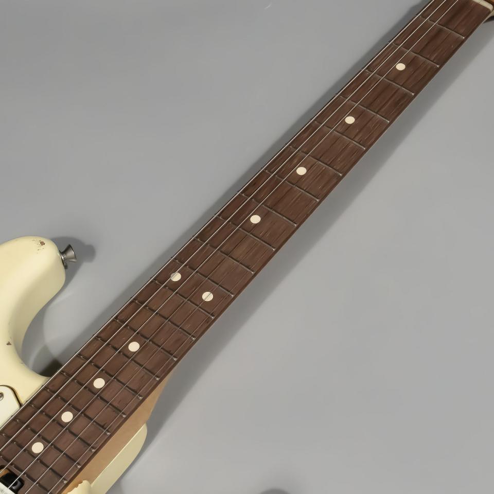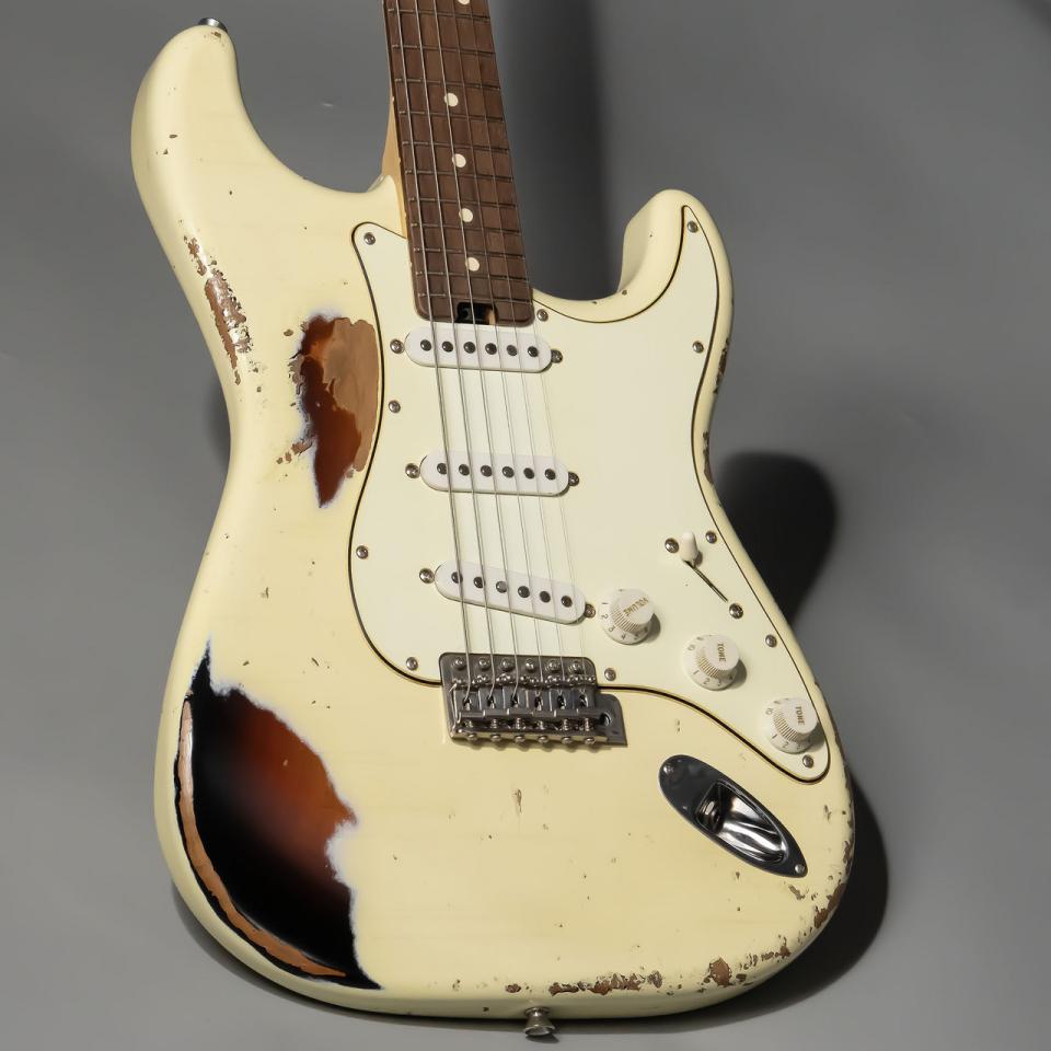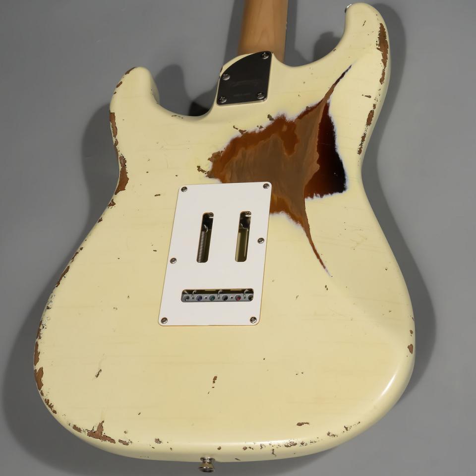 国産ハンドメイドのハイクオリティさとHISTORYならではの高い演奏性が見事に融合したPremiumシリーズ。厳選された木材を使用した独自設計のボディ、ネック形状により上級者にも納得のクオリティのギターです。こちらが6本限定生産で製作されるオーダー企画モデル。サンバーストの上にオリンピックホワイトを塗装し、エイジド加工を施すことで下の層を露出させた仕上げです。カタログには載っていないシングルコイルピックアップ×3仕様にハカランダの代替材として重宝されるマダガスカルローズウッドを指板材に採用。音の立ち上がりが速く、芯のあるサウンドが特徴です。ハーフトーンを選択時に感じる鈴鳴りがとても心地よいです。