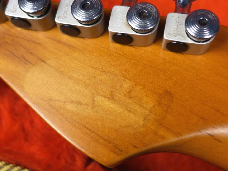 ネックジョイント部周辺のネック、ボディの塗装割れなど見受けられるなど、全体的にダメージが散見されるものの、製造から30年以上経過している事を考慮すれば、まずまずの外観コンデイション。
