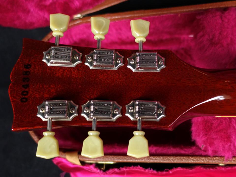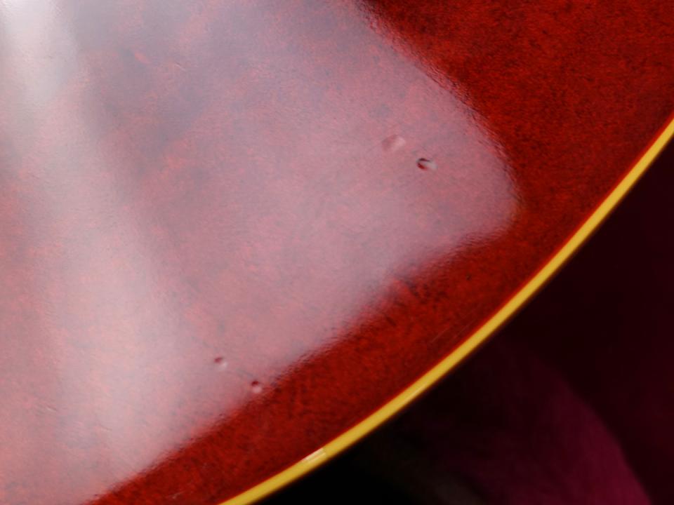 また、目立った箇所ではヘッドストックのGibsonロゴの周囲の塗装が目痩せに伴い割れが見受けられる等、外観の劣化や細かな傷などは散見されるものの、
