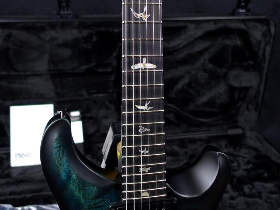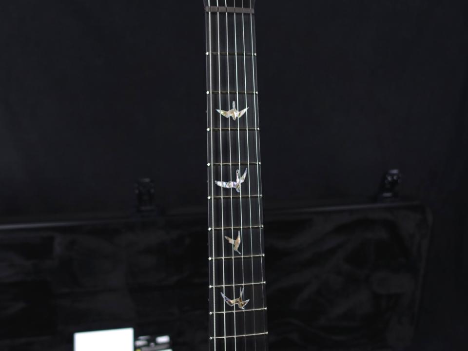 創業初期のPRS Guitarsへのオマージュとして、エボニーを使用した指板とヘッドストックには、それぞれオールドスクール・バード・インレイと、プリ・ファクトリー期のイーグル・インレイが施されています。