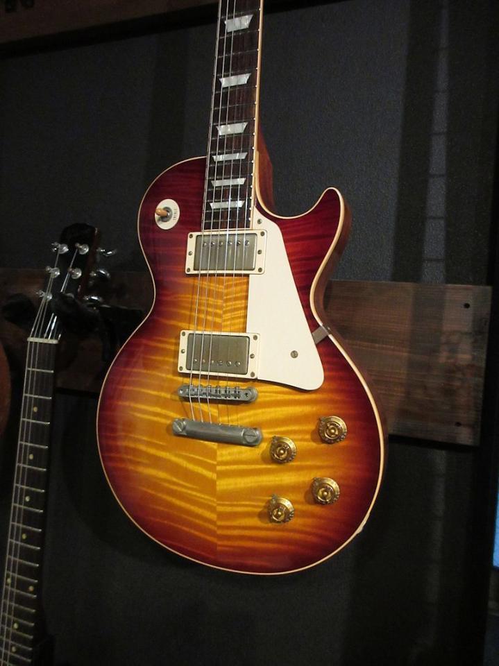 2009年に施された、ネックシェイプの形状見直し、ナイロンナットやピックガードマウントステーのマイナススクリュー採用など、細かな点でのブラッシュアップが踏襲された2012年の1959モデル。特筆すべきはトップ全面を覆うワイドで立体的なシーガルフレイムトップ!鮮やかなサンバーストカラーと相まってド迫力のルックスに仕上がった個体です!VOSフィニッシュですので、パーツのエイジングなどが施されていますが、目立つ傷もないコンディションの良い1本!翌年に行われるモデルチェンジ前のヒスコレも未だ根強い人気を誇っており、中古での流通量も減少しつつあります。Duane Allmanの所有していたサンバーストレスポールを髣髴とさせるナイストップの1本、お見逃しなく!ウェイト4.06kg、認定証類、カスタムショップ製ブラウンケース付属。
