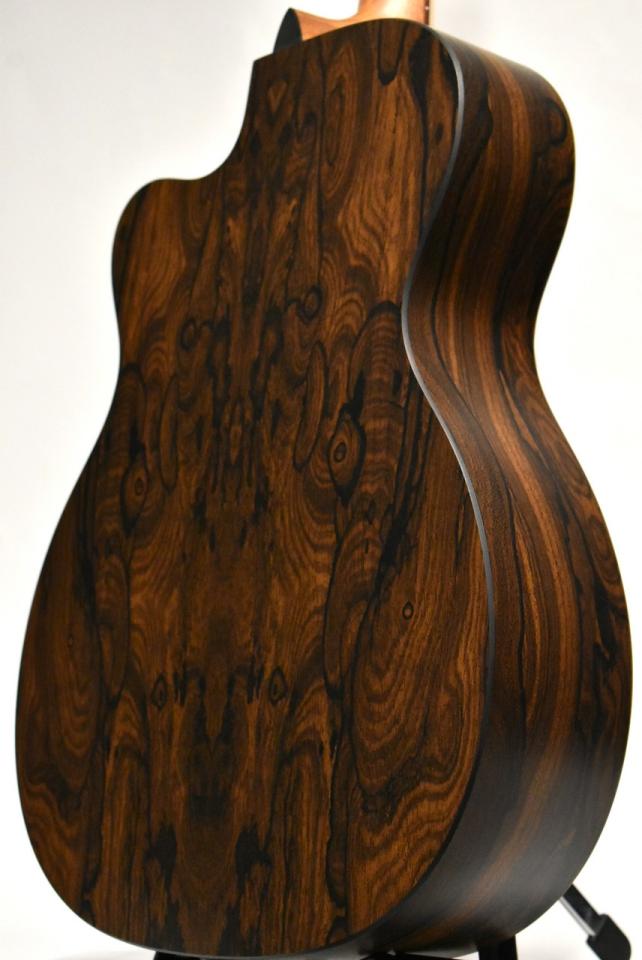 ロングスケールとカッタウェイを設けたOMCサイズが採用され、ピックでのストロークやフィンガーピッキングでやさしく爪弾くスタイルが良く合います。