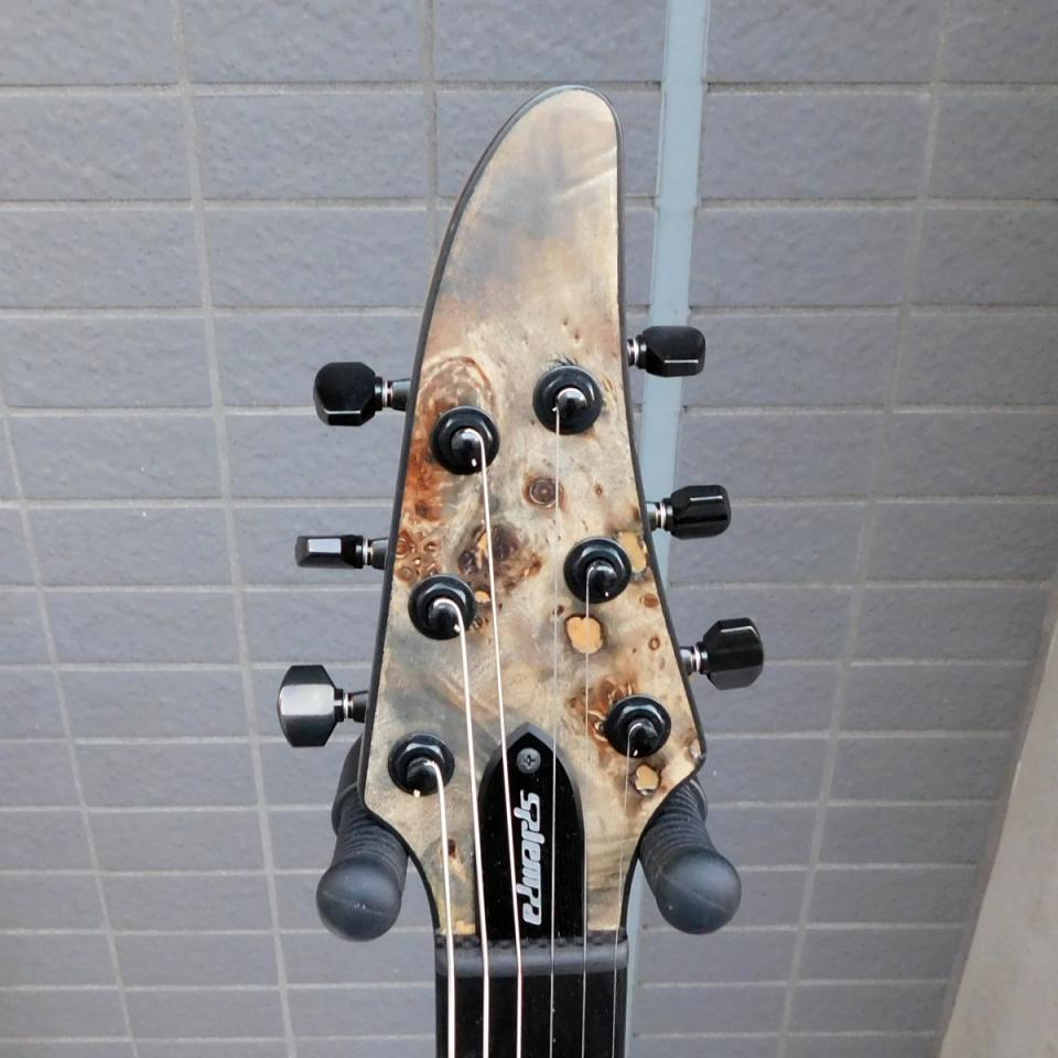 バールメイプル・ベニヤを採用したアッシュブラックカラーのルックスは、ステージ映えする高いデザイン性を誇ります。