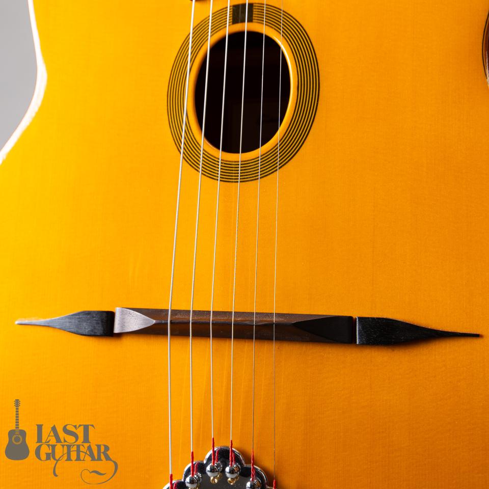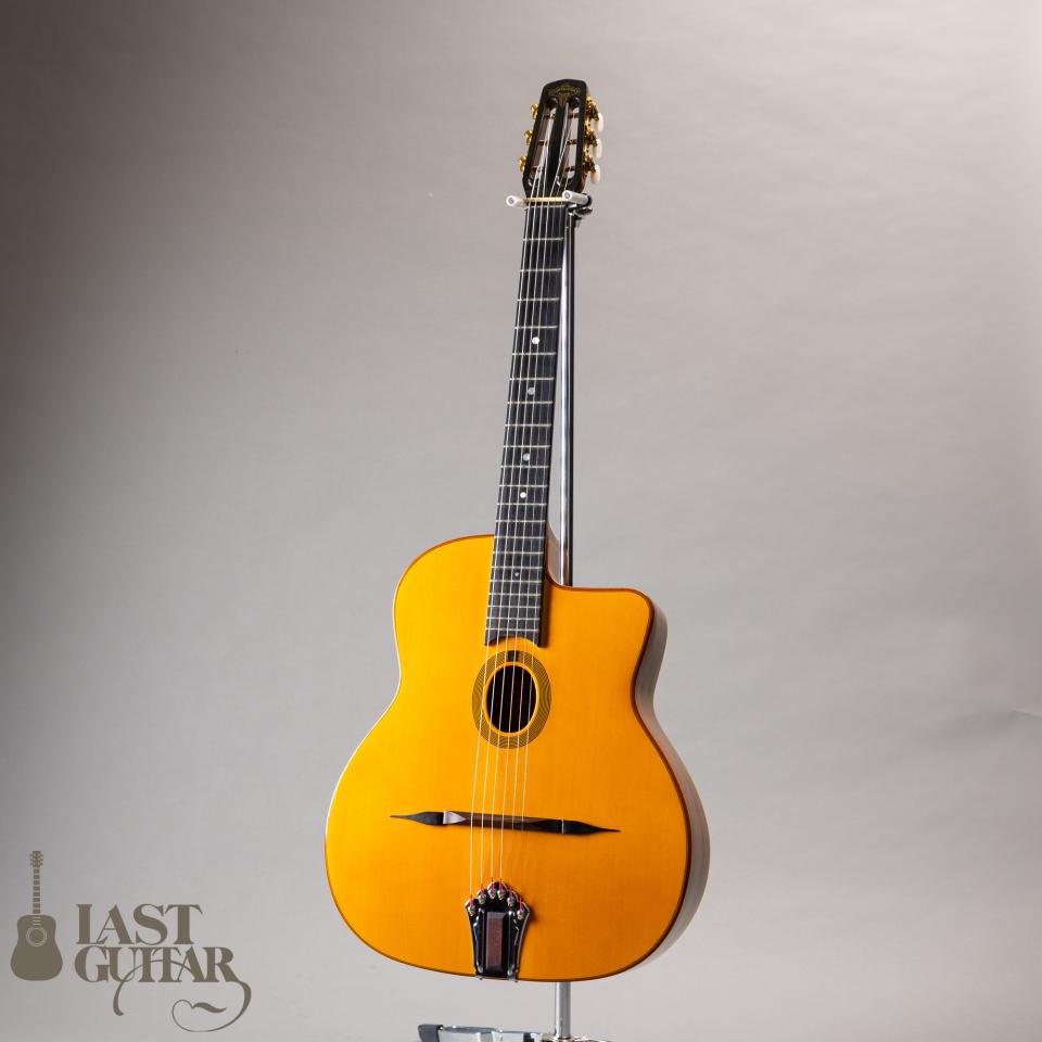 イタリアからフランスに渡ったギタールシアー、ジャン・P・カステルチアによって1946年に創設されスタートしたカステルチア工房、現在もフランスのパリに工房を構え、その伝統を引き継いだ3代目によってセルマー/マカフェリギターレプリカやクラシックギターが生み出されております。カステルチアのセルマータイプは、日本にも入荷はしておりましたが数は少なかったと記憶しておりますので希少なアイテムと思います。