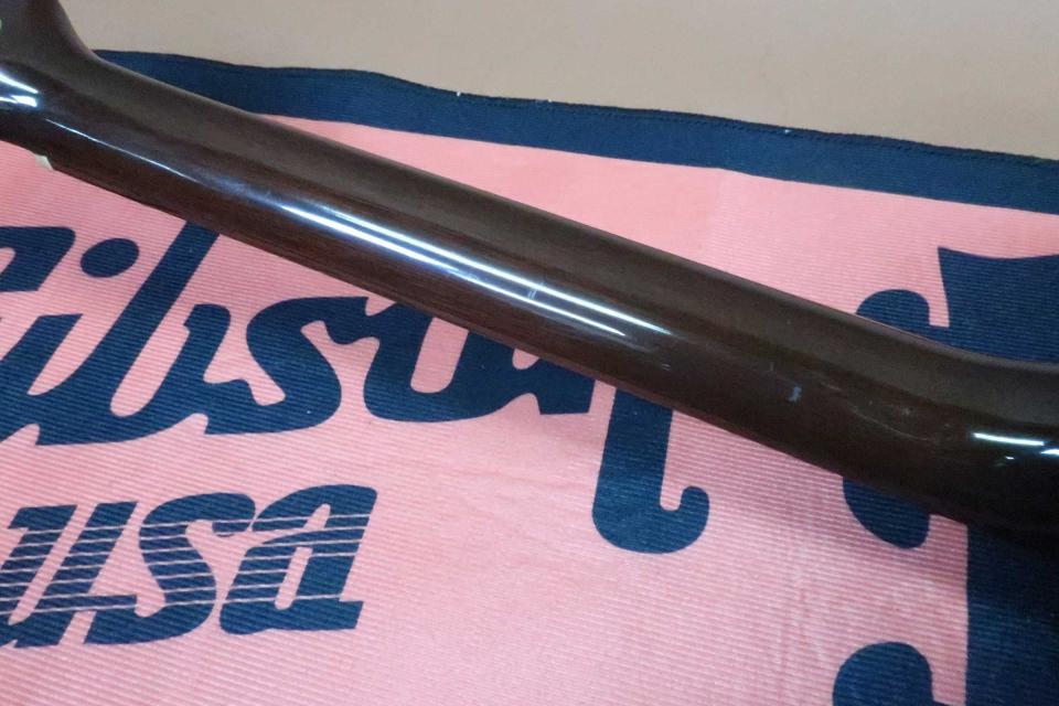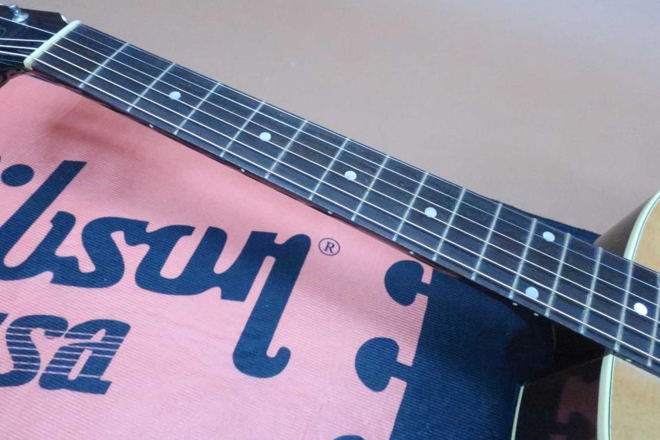 状態は使用感も少なくトップは光に翳してわかる極軽微な打コン程度でサイド&バックも軽い擦り傷ぐらいは見受けられますが、オールオリジナル・コンディションを保った極上品です。フレットも殆ど減っておらすネック裏も綺麗で10フレット裏に触ってわかるぐらいの打コンがあるぐらいで演奏性も問題がありません、また木部のクラックや修復歴も無くネックヒールのピン打やピックアップの取付もありません。弦長約628mm、ナット幅約43mm、弦高は可変式のアジャスブルサドルで12F6弦で約2.5mm。1弦約2mm、サドルの余裕も約3mm、ロッド調整の余裕も有りネックを含めプレイヤビリティも良好です。オリジナルハードケース付。中古市場でも玉数の少ない、お勧めのカスタム・ショップ製です。*尚、画像のGibsoonマットは付属しません。