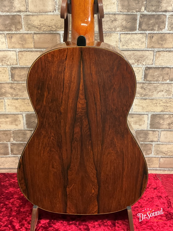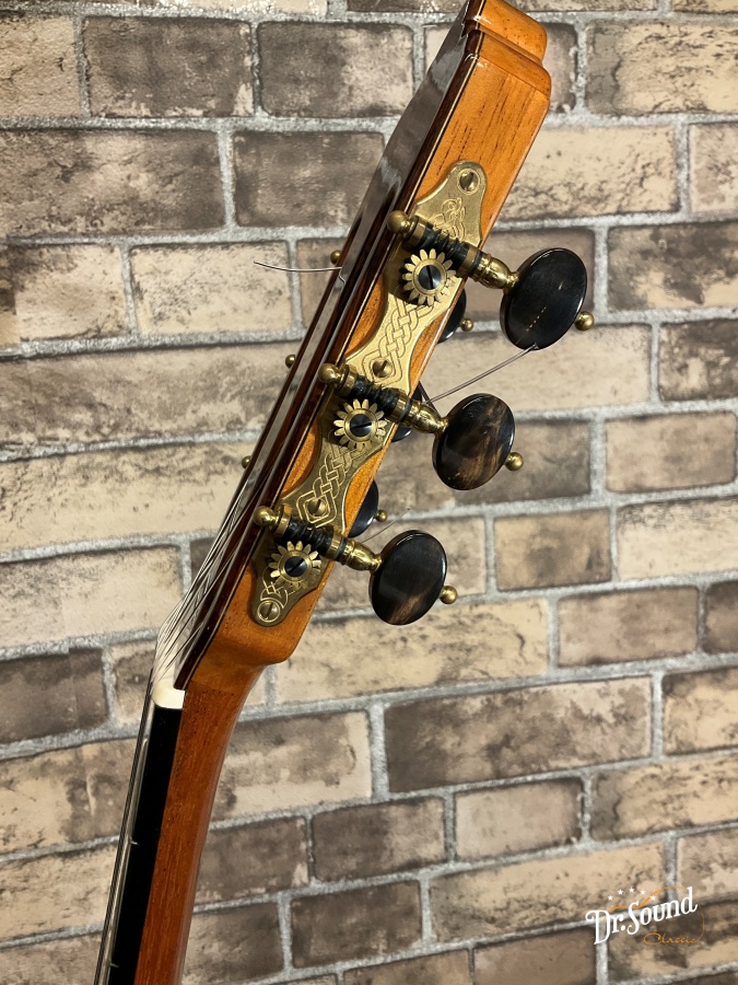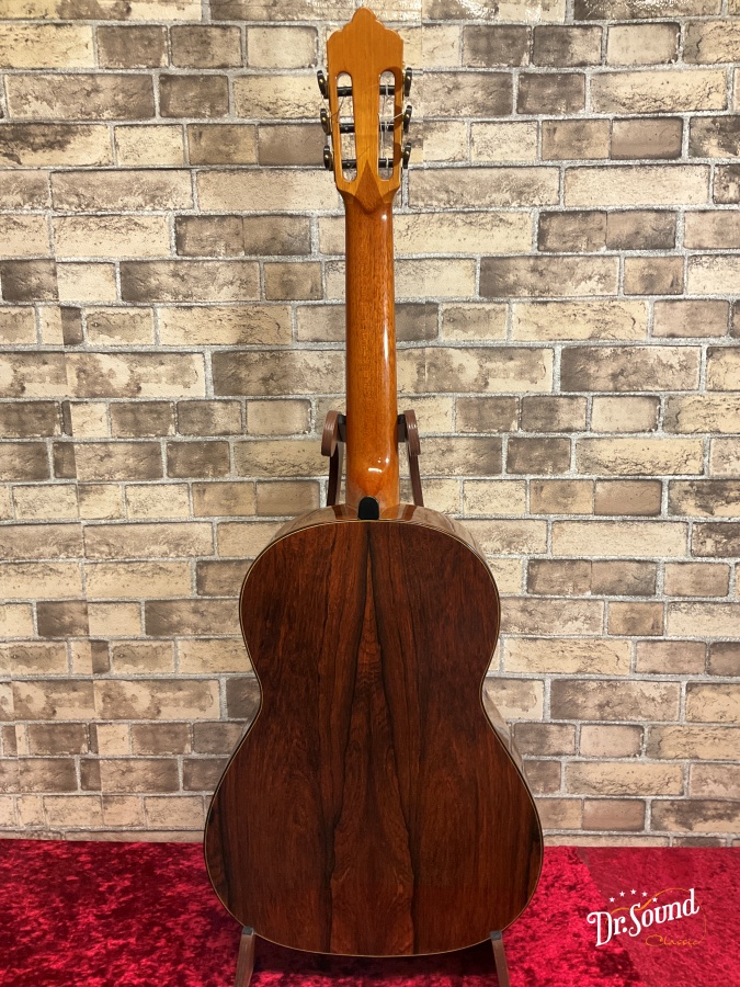 裏板はアーチバック、表面板にはラティスブレーシング(格子状の力木)を採用し、均一でバランスよいサウンドを実現するとともに、驚異的な大音量、ダイナミクスレンジをもち、コンサートギターとしての要素を兼ね備えたギターです。