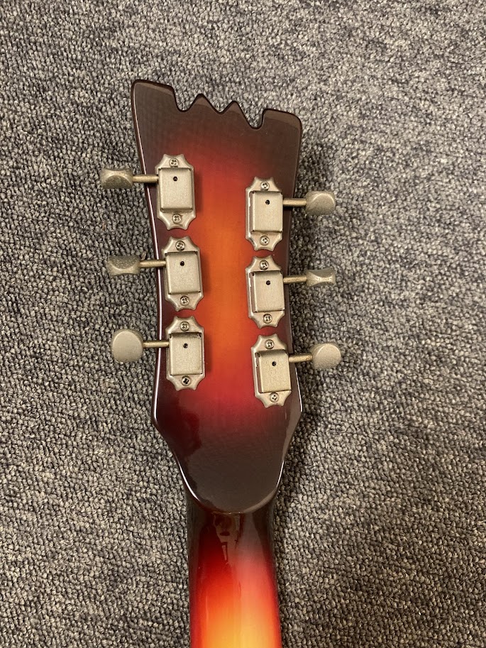 ほとんど使用していない為に割と綺麗なギターです。ヘッドにベンチャーズのロゴが入っております。ピックアップから国産黒雲製と思われますので作りも良くネックが細くて大変弾き易くなっております。フレットの減りはほとんど御座いません。